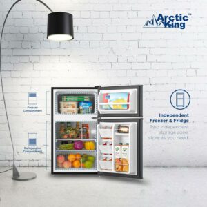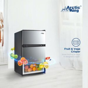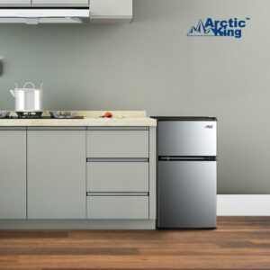 Introducing the Arctic King 3.2 Cu. Feet Two-Door Mini Fridge with Freezer in Stainless Steel – a versatile and compact solution for your refrigeration needs. With its sleek design and convenient features, this mini fridge is perfect for dorm rooms, offices, apartments, or any space where a compact cooling solution is required.