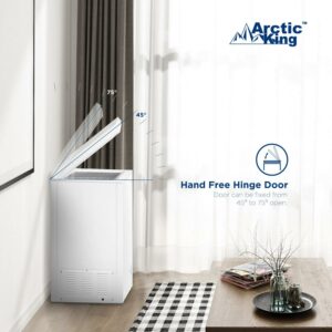 The Arctic King Chest Freezer features a sleek and classic white design that seamlessly blends into any kitchen or storage area. Its compact size allows for convenient placement, making it suitable for apartments, dorm rooms, garages, or small spaces where extra freezer storage is needed.