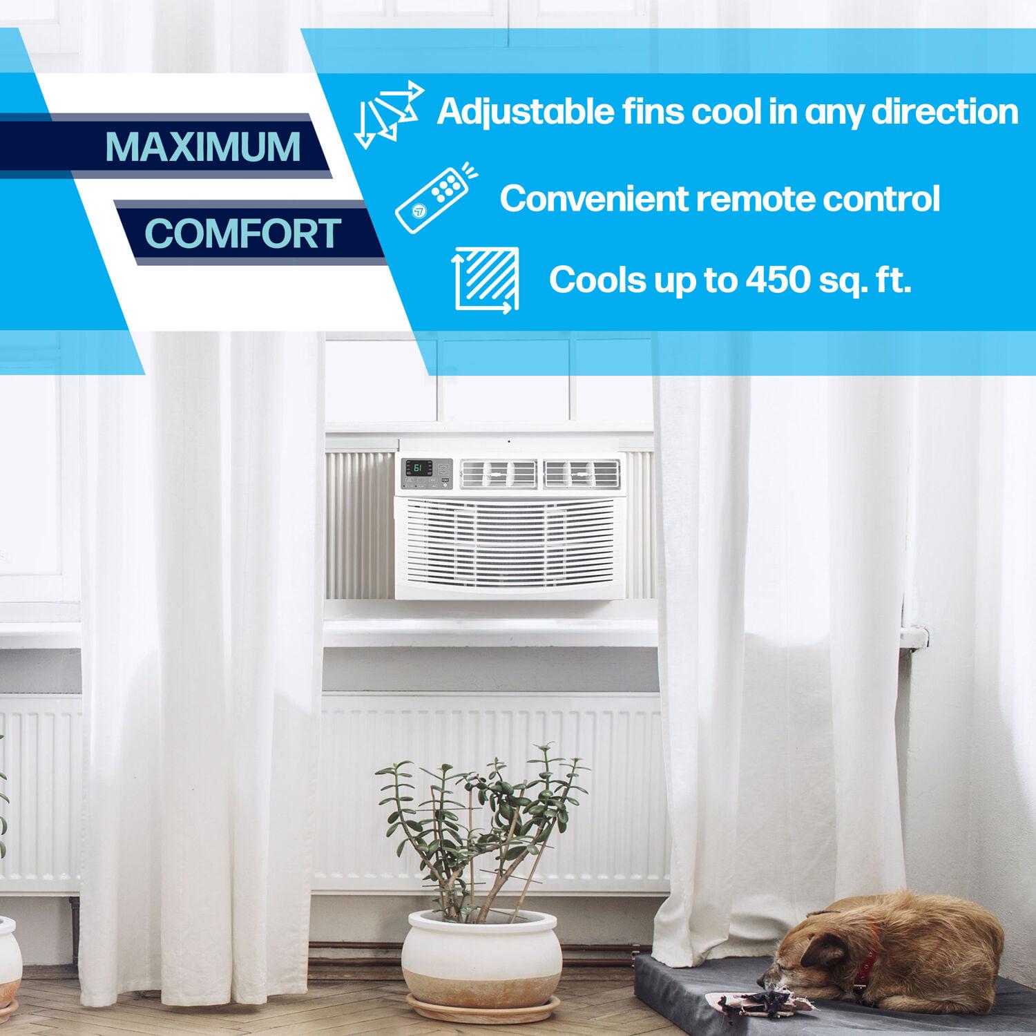 Keeping your cool as summer heats up is simpler than you think. Don t worry about clunky ductwork or a complex zoned system. Whether you re living in a studio apartment or a spacious single-family home, just plug and play. This window air conditioner from Arctic Wind is just that chill. With a 10,000 BTU cooling capacity, it quickly and efficiently cools spaces up to 450 square feet with ease. Set your ideal temperature and keep it there with smart controls. You lead and cool air follows with full-range air direction control and a full-function remote that puts the thermostat at your fingertips. Summer coming to an end