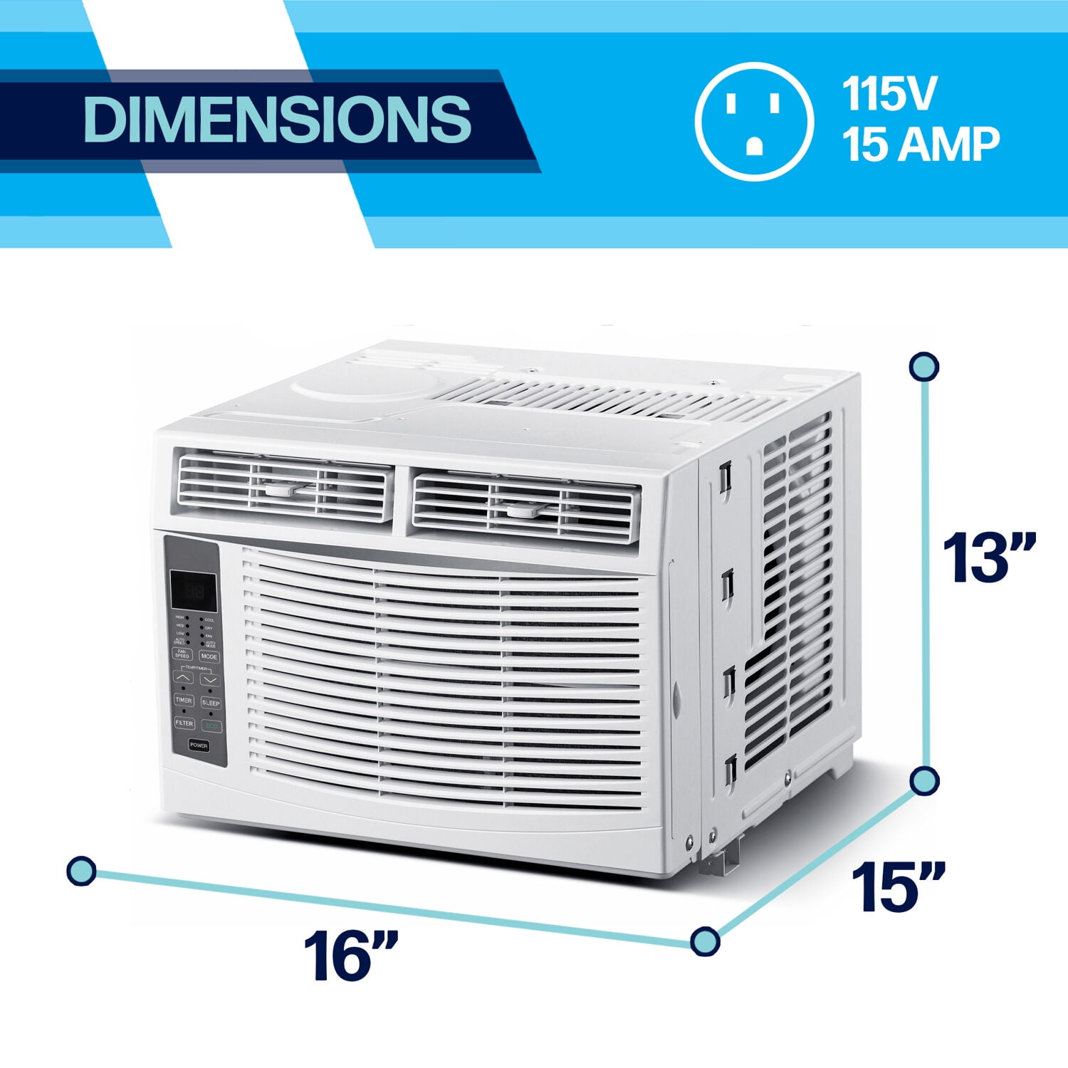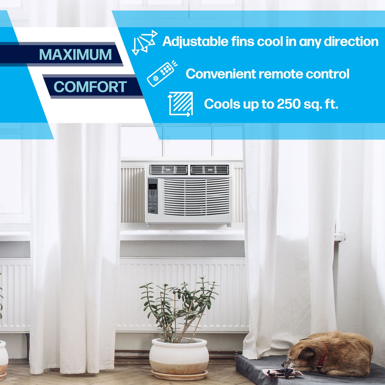 - 6,000 BTU air conditioner for window-mounted installation cools a room up to 250 sq. ft.