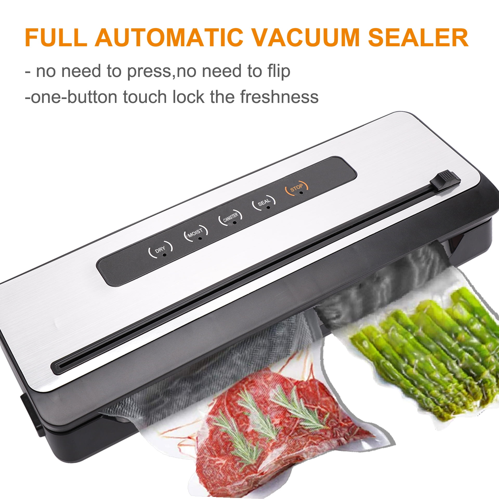 【Built-in Cutter】 Built-in cutter Convenient reel storage allows you to easily customize the bag size to suit your needs without using scissors. 【Compact And Portable】The Compact vacuum sealing machine will not be a burden on you, and it can be easily placed in lockers and drawers. 【Wet/Dry Dual Mode】 According to your different food types, it provides the best preservation for your food. The newly upgraded wet pumping function of the vacuum sealing machine can help preserve cured meat and seafood for up to 25 days, and lock in moisture, saving money and reducing waste. While the dry pumping mode can meet the daily meal preparation needs of nuts, snacks, fruits, vegetables, etc. It is best to use a professional vacuum bag, which vacuums and seals better. 【Accessory Hose】exernal vacuum system, For crisper jars and crisper boxes, the vacuum packaging machine can reduce the rate of food oxidation and prevent the smell of wine and sauces from evaporating too quickly. Air sealer machine can also protect your valuables, keeping them isolated from air and moisture. 【Professional Design】 Bag Alignment and extra-wide sealing strip make it simple to perfectly position bags to avoid bag waste; Food vacuum sealer removes air from specially designed bags.Multi- layer material heat seals to keep air out reduces spoilage and food waste. And cooking and meal preparation will become easier, more economical and faster.