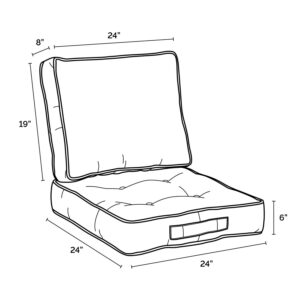 – Cushion Dimensions: Back: 19 in H x 24 in W x 8 in T, Bottom: 24 in L x 24 in W x 6 in T