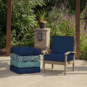Arden Selections Outdoor Plush Classic Tufted Blowfill Deep Seat Set, 24 x 24, Water repellent, Fade Resistant, Deep Seat Bottom and Back Cushion for Chair and Couch 24 x 24, Sapphire Blue Leala