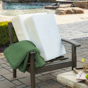 – A GREAT FIT: This seat of this deep seating cushion set measures 24″ long x 24″ wide x 6″ thick, while the back cushion measures 18″ tall x 24″ wide x 6″ thick. The top and bottom cushions are interchangeable to provide either a modern or a European-style look! Measure the seat and back of your deep seating or conversation furniture to feel confident that this common size cushion will fit!