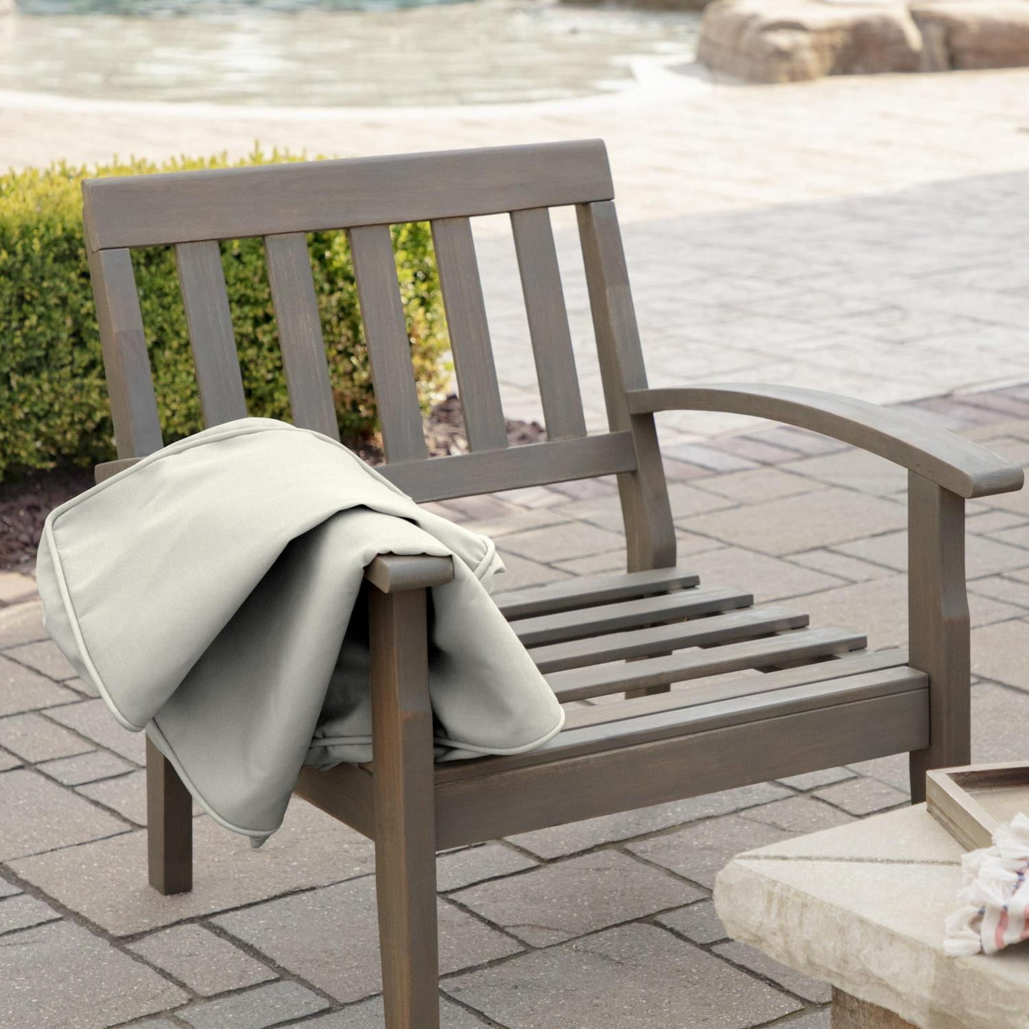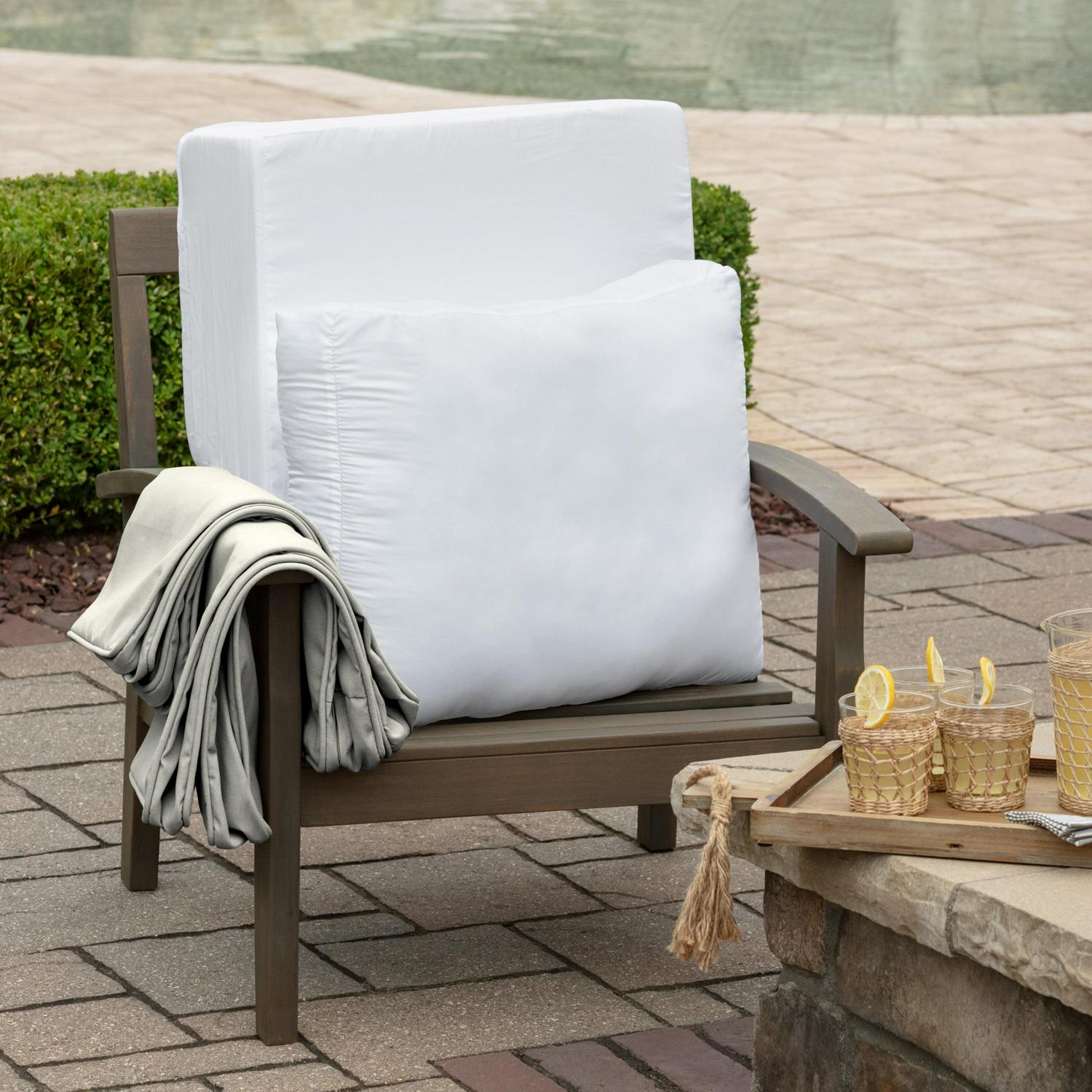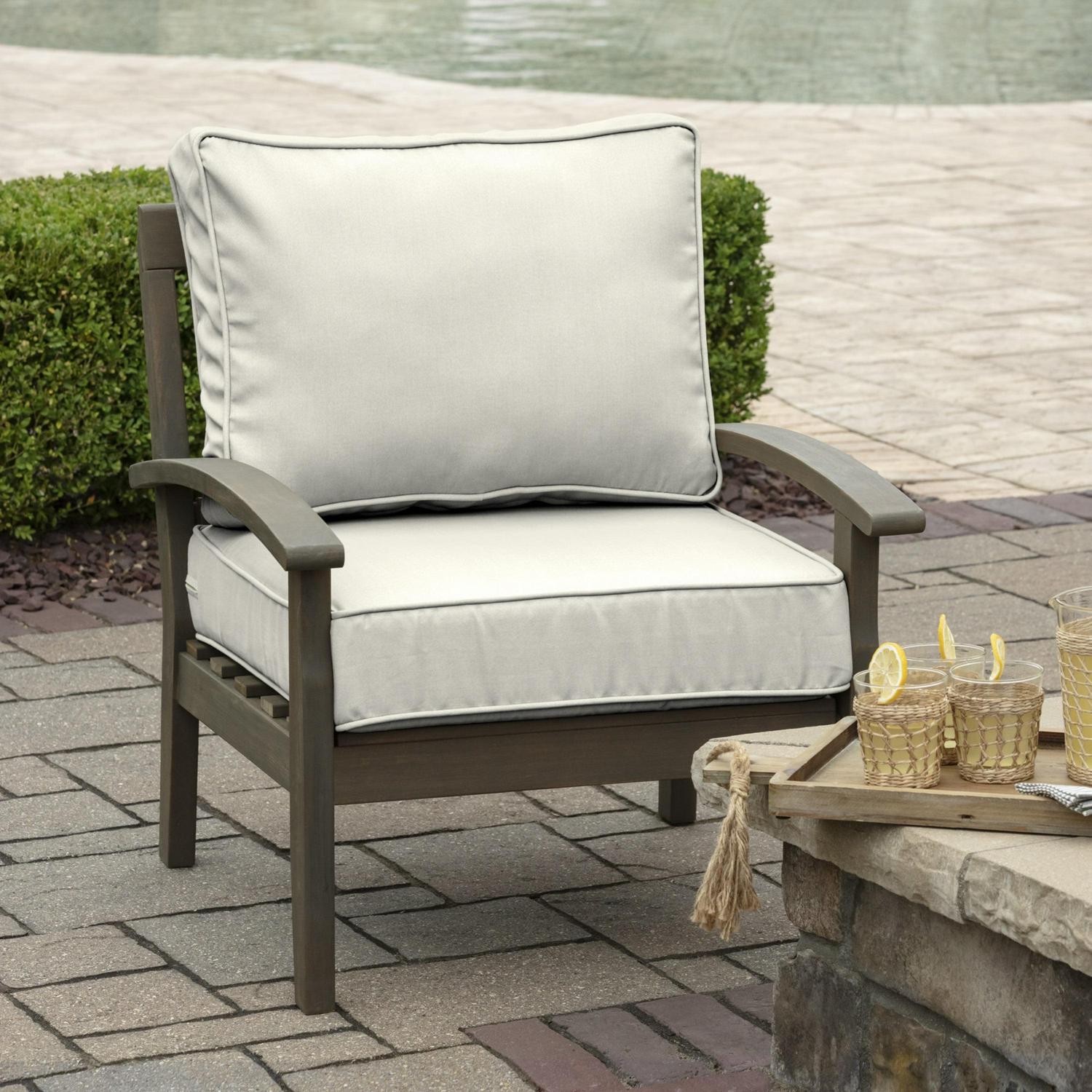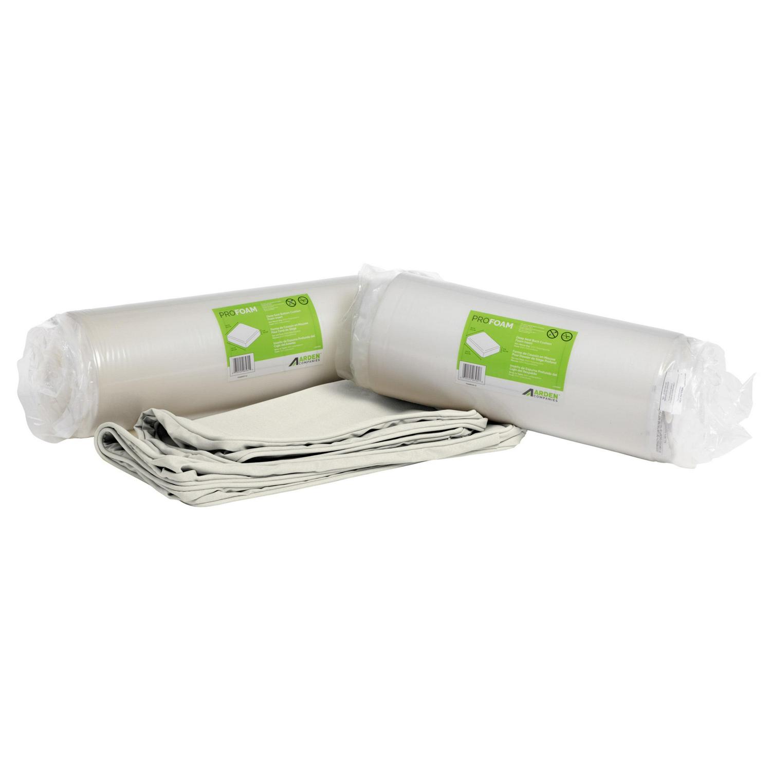 This Arden Selections ProFoam Outdoor Plush Deep Seat Cushion Set is made with the same high-performance, long-lasting, durable foam that came with your outdoor furniture set. These firm, yet comfortable outdoor foam patio cushions have a sleek and modern look, adding clean lines to refresh your outdoor furniture. The two pieces of foam come in compressed rolls to reduce shipping waste and easily slip into the provided acrylic cushion covers. This deep seat set comes with an interchangeable back and bottom cushion that give two very different, yet distinct and stylish looks. With the clean finish of the double welt, this 100% solution dyed acrylic cushion cover features weather and UV resistant EverTru Acrylic fabric, which resists fading and repels water and stains. The extended UV protection means your fabric will continue looking brighter longer as you enjoy your hours outdoors and comes with a 5-year limited fabric warranty. The proprietary EverBloc stain and water protection ensure optimum outdoor functionality, with easy spot cleaning with soap and water, or a mixture of bleach and water for harsh stains. Arden Selections ProFoam comes in a variety of colors and styles, all with easy to use extra long zippers that make changing your cushion a breeze. Look for our other Arden Selections ProFoam cushion styles to fit all your outdoor furniture needs.