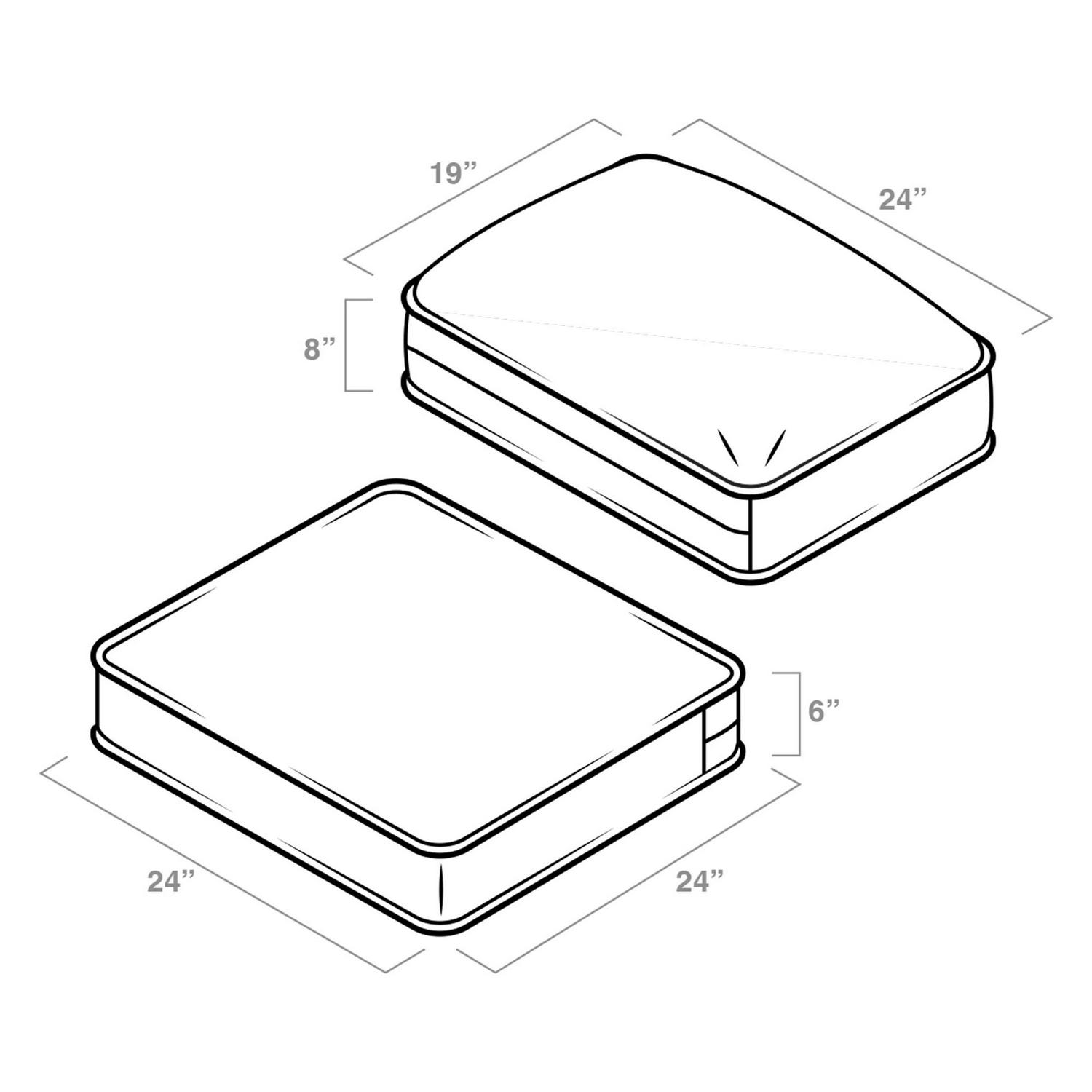 – A GREAT FIT: This seat of this deep seating cushion set measures 24″ long x 24″ wide x 6″ thick, while the back cushion measures 19″ tall x 24″ wide x 8″ thick. The top and bottom cushions are interchangeable to provide either a modern or a European-style look! Measure the seat and back of your deep seating or conversation furniture to feel confident that this common size cushion will fit!