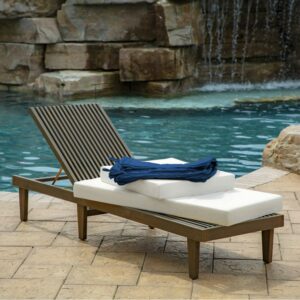 The Arden Selections ProFoam Outdoor Chaise Cushion is made with the same high performance, long-lasting, durable foam that came with your outdoor furniture set. These firm, yet comfortable outdoor foam patio cushions have a sleek and modern look adding clean lines to refresh your outdoor furniture. The two pieces of foam come in compressed rolls to reduce shipping waste and easily slip into the provided acrylic cushion cover. With the clean finish of the double welt and three sets of ties to hold in place this 100% acrylic cushion cover features durable, UV resistant EverTru Acrylic Fabric, which resists fading and repels water and stains. The extended UV protection means your fabric will continue looking brighter longer as you enjoy your hours outdoors and comes with a 5-year limited fabric warranty. The stain and water protection ensure optimum use outdoors, with easy spot cleaning with soap and water, or a mixture of bleach and water for harsh stains. Arden Selections ProFoam comes in a variety of colors and styles all with easy to use extra long zippers that make changing your cushion a breeze. Look for our other Arden Selections ProFoam cushion styles to fit all your outdoor furniture needs.