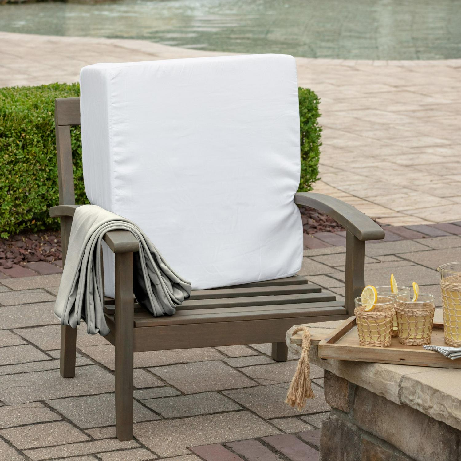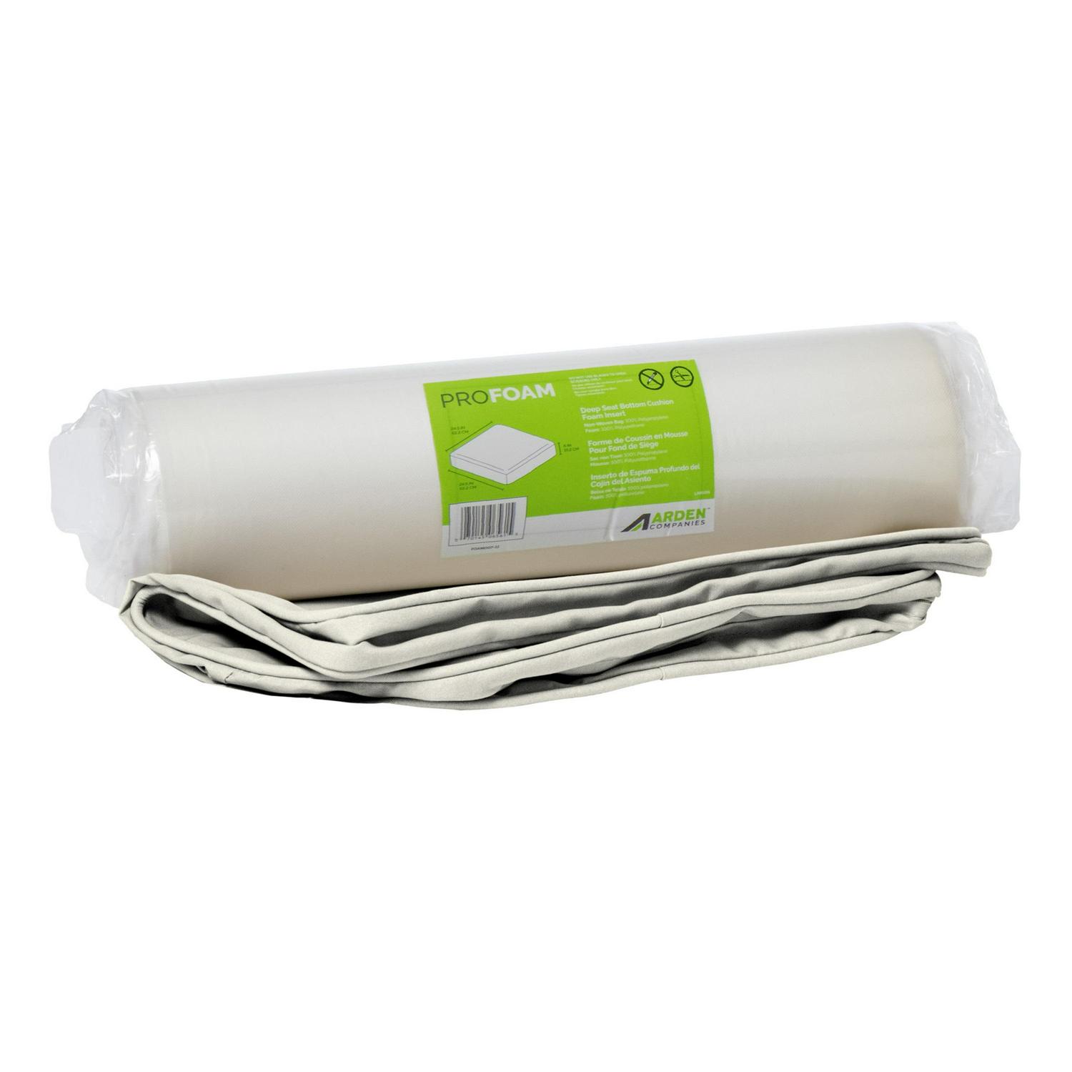 This Arden Selections ProFoam Outdoor Deep Seat Cushion Bottom is made with the same high-performance, long-lasting, durable foam that came with your outdoor furniture set. This firm, yet comfortable outdoor foam patio cushion has a sleek and modern look, adding clean lines to refresh your outdoor furniture. The piece of foam comes in a compressed roll to reduce shipping waste and easily slips into the provided acrylic cushion covers. This deep seat cushion bottom can be paired with interchangeable back cushions that give two very different, yet distinct and stylish looks. With the clean finish of the double welt, this 100% solution dyed acrylic cushion cover features weather and UV resistant EverTru Acrylic fabric, which resists fading and repels water and stains. The extended UV protection means your fabric will continue looking brighter longer as you enjoy your hours outdoors and comes with a 5-year limited fabric warranty. The proprietary EverBloc stain and water protection ensure optimum outdoor functionality, with easy spot cleaning with soap and water, or a mixture of bleach and water for harsh stains. Arden Selections ProFoam comes in a variety of colors and styles, all with easy to use extra long zippers that make changing your cushion a breeze. Look for our other Arden Selections ProFoam cushion styles to fit all your outdoor furniture needs.