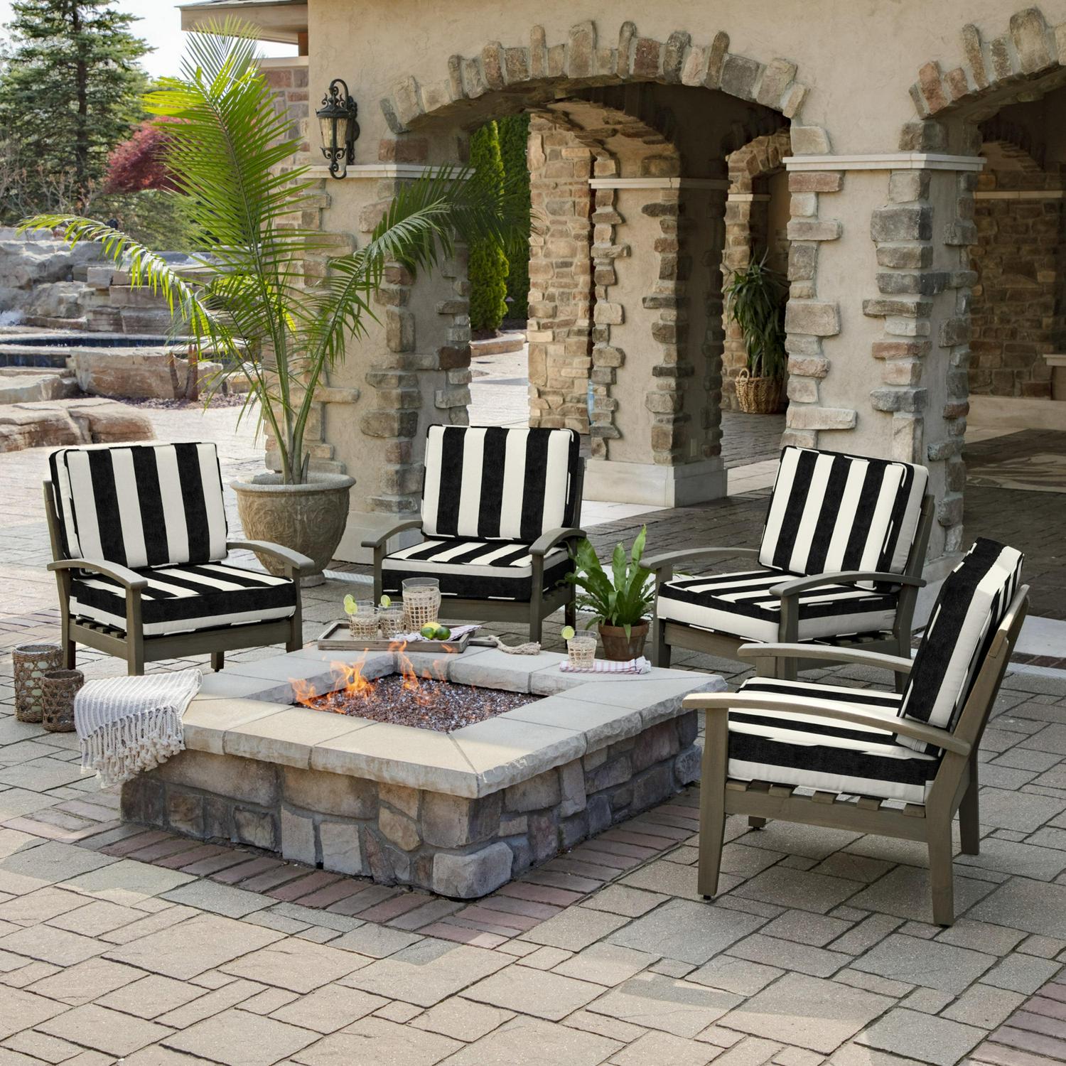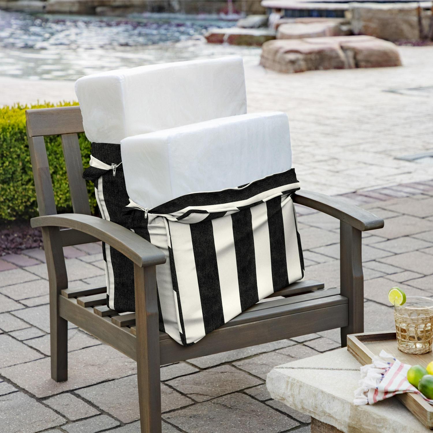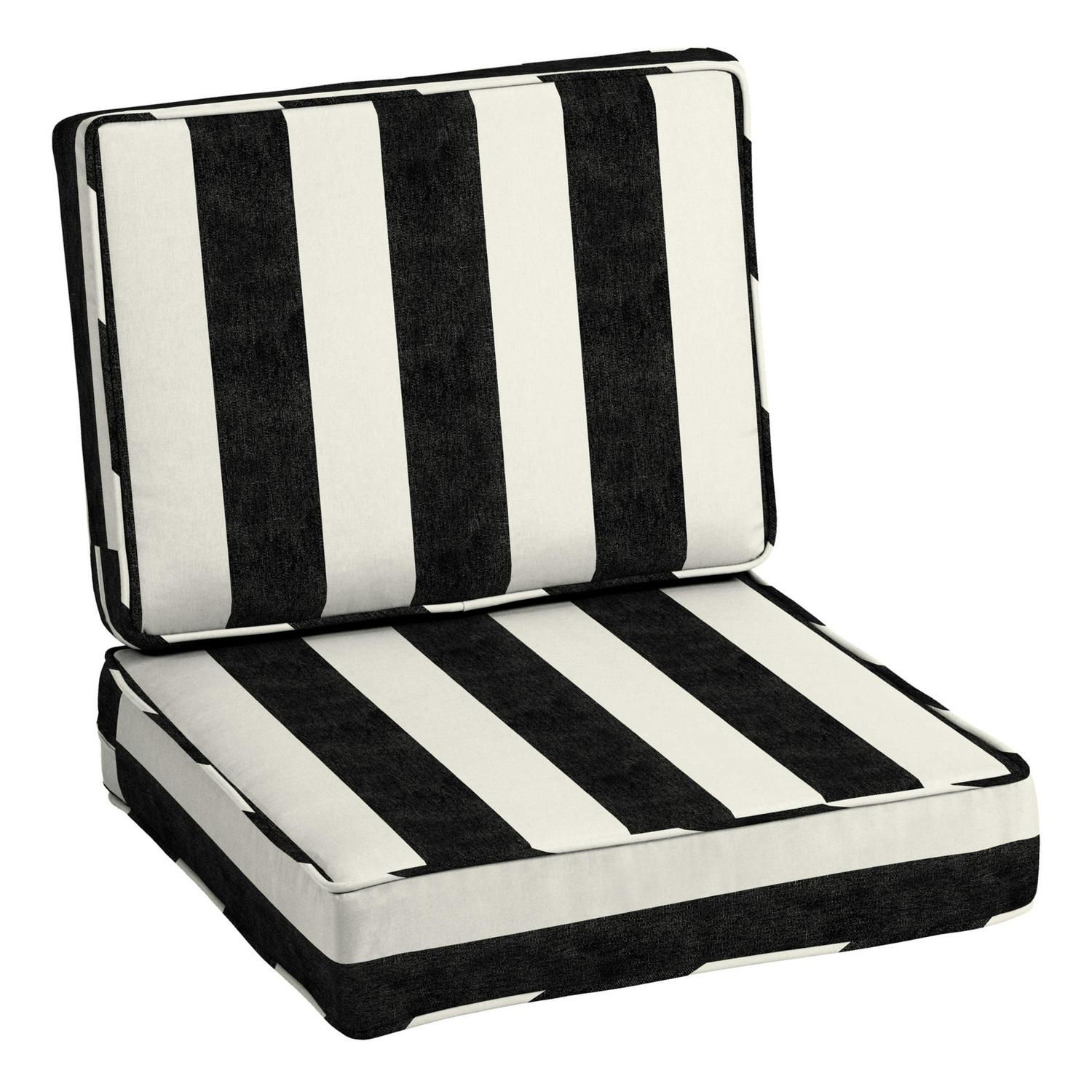 Arden Selections ProFoam Performance Outdoor Deep Seating Cushion Set 24 x 24, Onyx Black Cabana Stripe