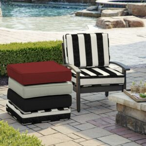 – A GREAT FIT: This seat of this deep seating cushion set measures 24″ long x 24″ wide x 6″ thick, while the back cushion measures 18″ tall x 24″ wide x 6″ thick. The top and bottom cushions are interchangeable to provide either a modern or a European-style look! Measure the seat and back of your deep seating or conversation furniture to feel confident that this common size cushion will fit!