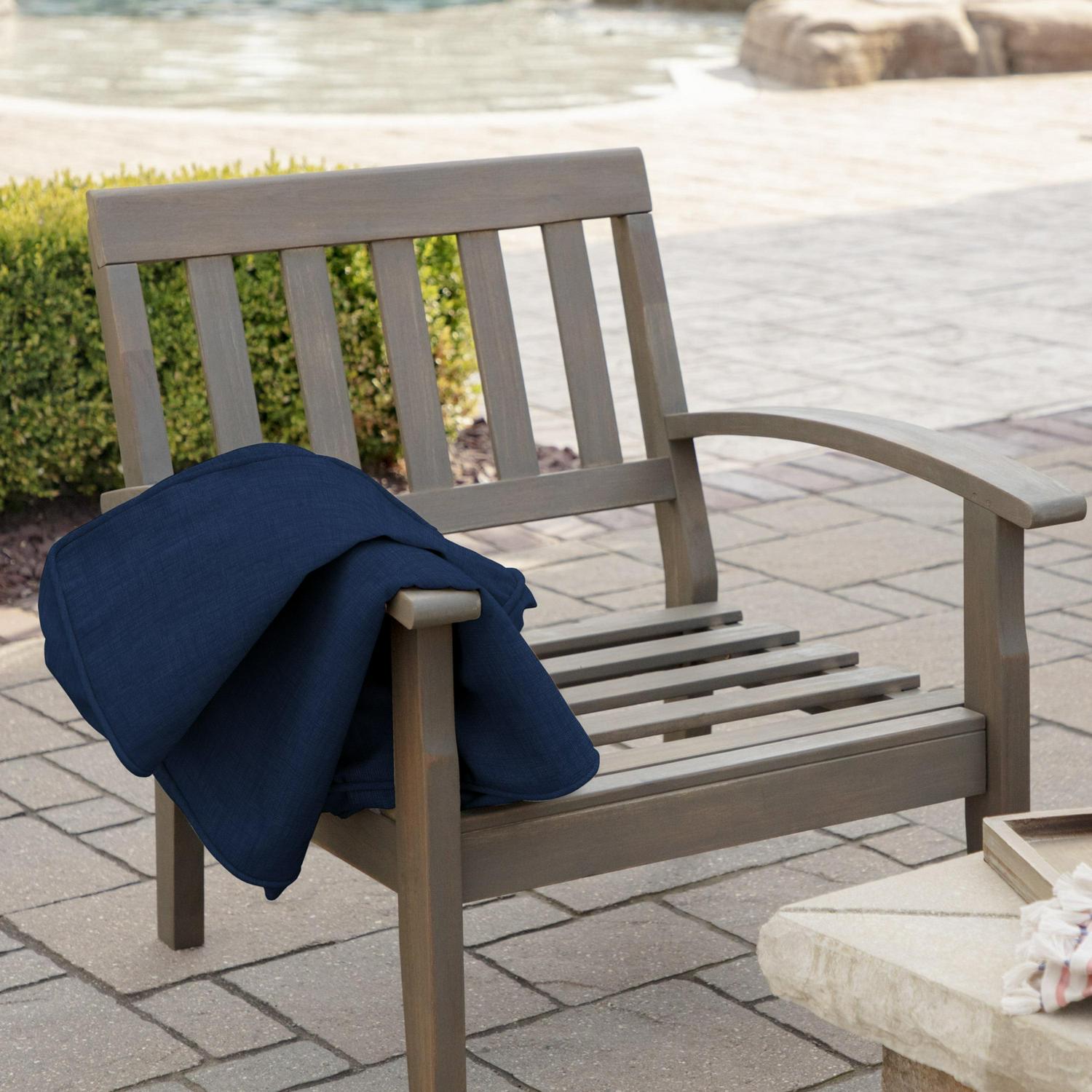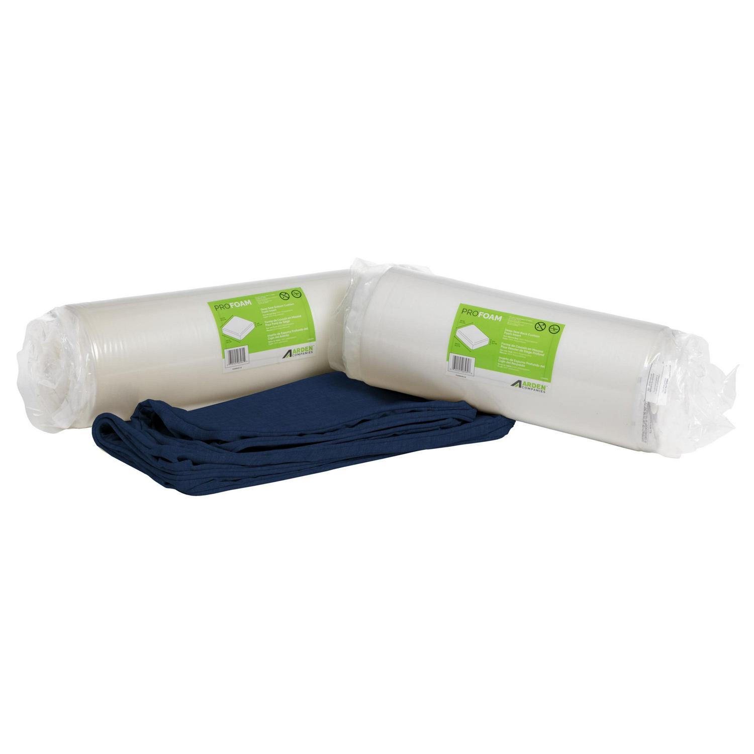 This Arden Selections ProFoam Outdoor Plush Deep Seat Cushion Set is made with the same high-performance, long-lasting, durable foam that came with your outdoor furniture set. These firm, yet comfortable outdoor foam patio cushions have a sleek and modern look, adding clean lines to refresh your outdoor furniture. The two pieces of foam come in compressed rolls to reduce shipping waste and easily slip into the provided cushion covers. This deep seat set comes with an interchangeable back and bottom cushion that give two very different, yet distinct and stylish looks. With the clean finish of the double welt, this 100% resilient polyester cushion cover is UV resistant and features a DWR treatment which repels water. The extended UV protection means your fabric will continue looking brighter longer as you enjoy your hours outdoors and comes with a 1-year limited fabric warranty. Easy spot cleaning with soap and water. Arden Selections ProFoam comes in a variety of colors and styles, all with easy to use extra long zippers that make changing your cushion a breeze. Look for our other Arden Selections ProFoam cushion styles to fit all your outdoor furniture needs.
