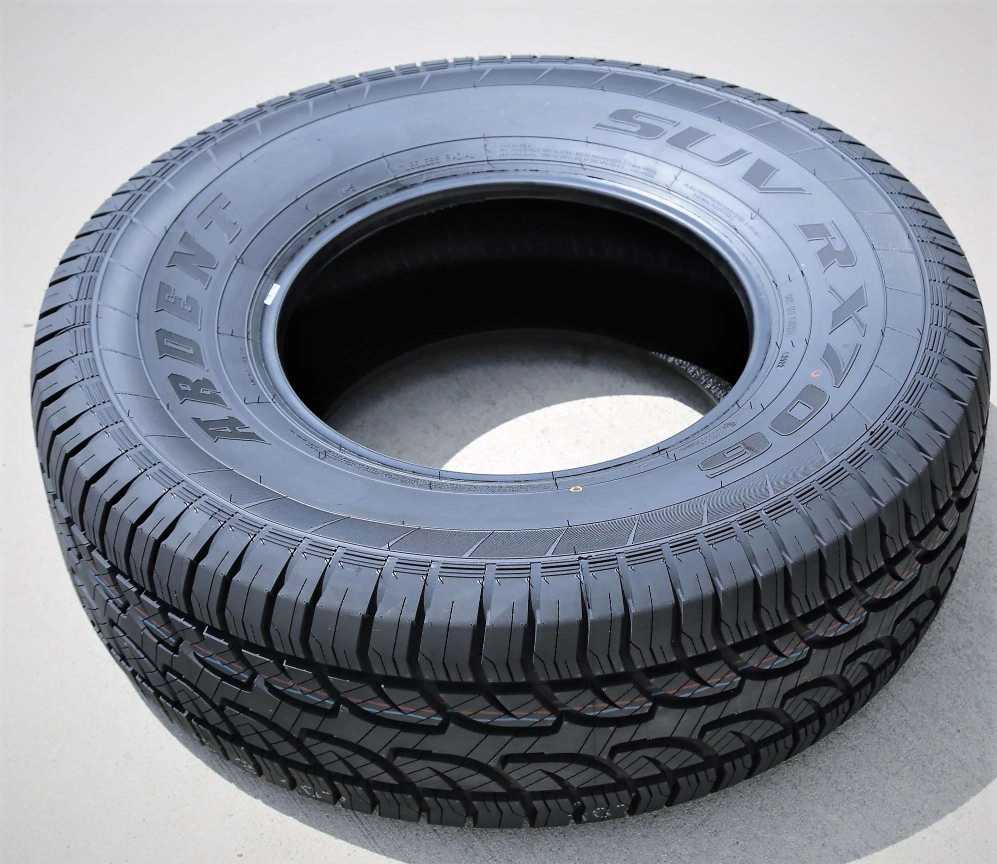 Ardent SUV RX706 OVERVIEW The Ardent SUV RX706 is an all terrain, all season tire manufactured for SUVs and light trucks. The model promotes great all season traction. The all season compound and the detailed tread design significantly boosts the dry, wet, and winter weather grip on the road surface. The stronger compound elements keep the rubber flexibility throughout the drive, with the durable rubber materials. The sipe and notch placement allows the tire to increase the grip on the road surface with extra biting edges. The circumferential grooves prevent hydroplaning by dispersing water and slush from the footprint during the tire’s on-road performance. The tread elements also guarantee a safer all terrain performance. The optimal tread elements enable the tire to optimize the soft, loose, and uneven terrain traction, increasing the forward motion on versatile terrains. The tread elements allow the tire to enhance the deep mud and loose dirt terrain performance, optimizing the driving safety levels. The tire also ensures excellent self-cleaning ability, as the footprint disperses mud and snow, and ejects rocks stuck between the tread elements. This ensures the surface contact and avoids stone retention as well. A better controllability is ensured with this tire model. The tread design improves the surface contact while the tires are in motion, which enhances the steering responsiveness and driving stability both on- and off-road. These tread elements allow the tire to increase the steering response time and accuracy to the driver’s commands, while the structure is secured against the driving pressure. The strengthened internal structure enables the tire to upgrade the load capacity, since the tire does not deform under the load and driving pressure. The SUV RX706 utilizes the unique tread design in order to ensure high driving comfort levels. The tread design helps to channel airwaves through the footprint, without allowing their contact with the tread elements. As a result, sound waves are not generated, ensuring the passengers’ better overall comfort levels. This provides a quiet driving experience during the tire’s on-road drive. Not all tire sizes are suitable for all vehicle types. Please refer to the item specifications for accurate information about vehicle type fitment for this particular size. Manufacturers recommend changing tires every 10 years. As long as tires are properly stored before they are sold, the year of their manufacture will not shorten their service life.