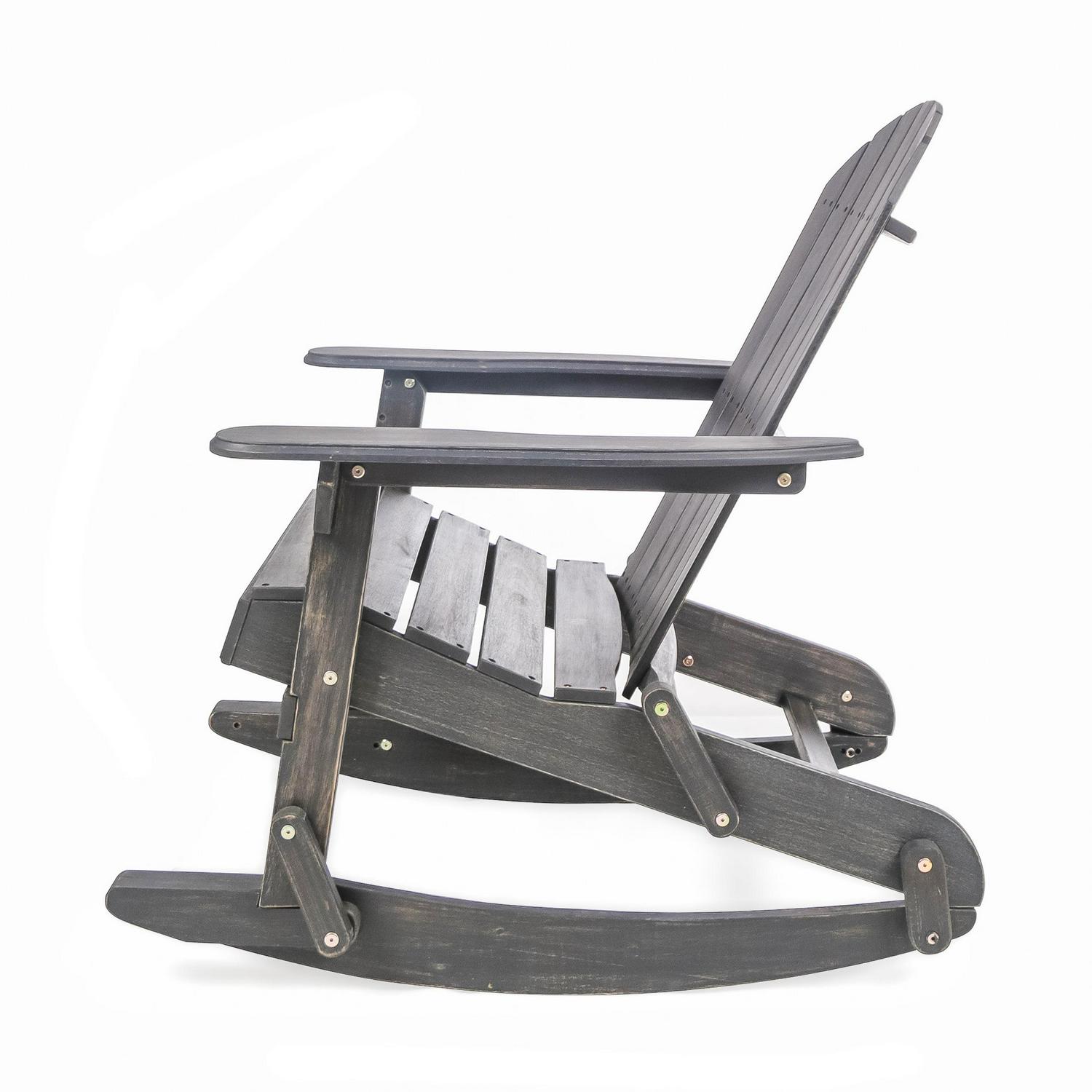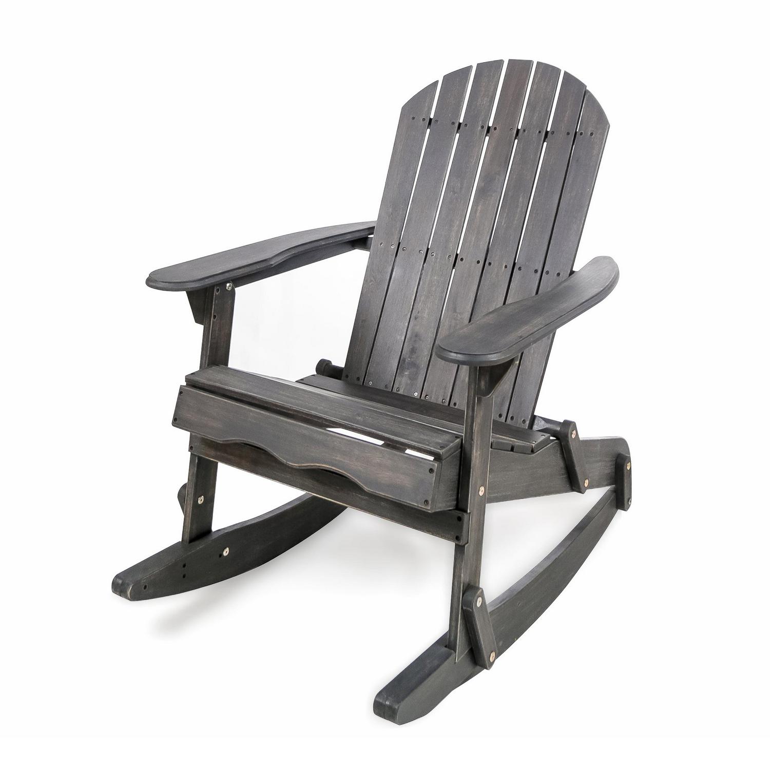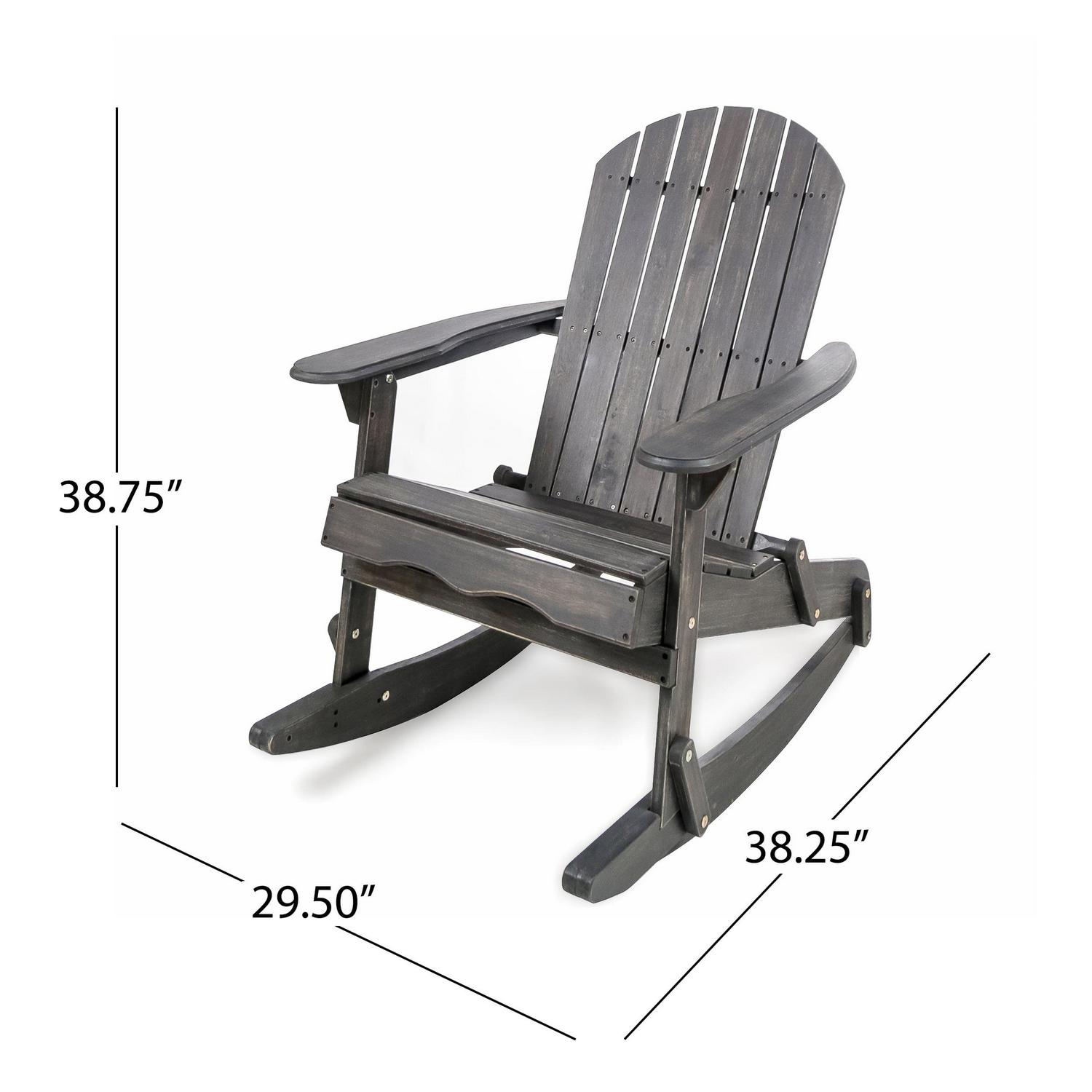Ariel Outdoor Acacia Wood Adirondack Rocking Chair, Dark Grey