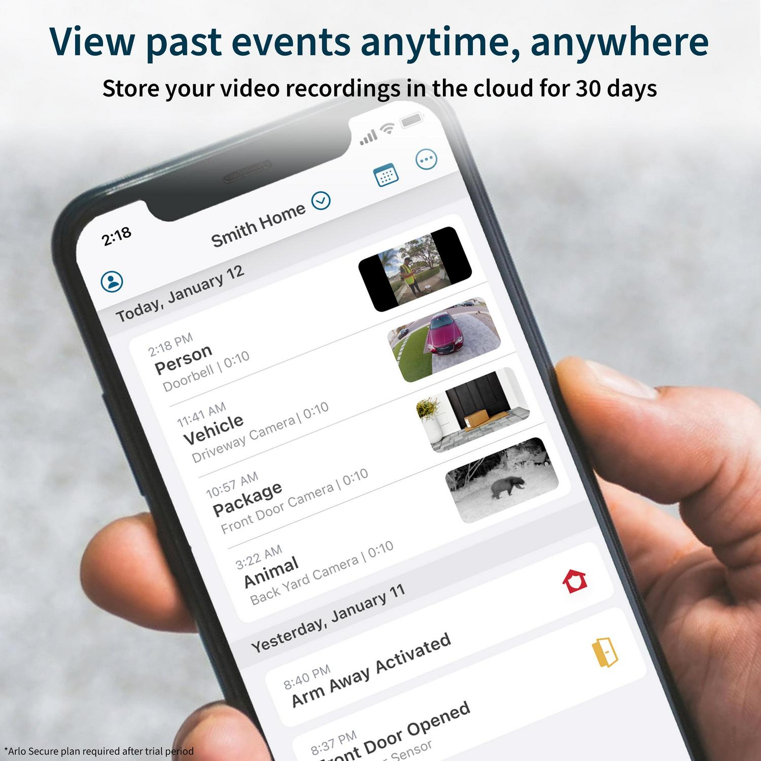 – Alerts that matter most: Receive notifications when motion is detected for people, packages, vehicles, and animals with included 3 months trial of Arlo Smart