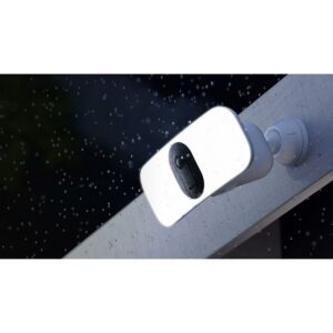 Illuminate and view 2K video with the powerful wire-free Arlo Pro 3 Floodlight Camera. The multi-functional wire-free floodlight camera cuts through darkness with brilliant LEDs, and an integrated high resolution 2K camera allows you to clearly view live video or recorded clips directly from your phone, with an included trial of Arlo Secure. The sleek design seamlessly integrates a robust security solution into your space. See more with a wide 160-degree field of view. Hear and speak to visitors clearly, with two-way audio. Customize lighting configurations to enhance security. Trigger your built-in siren remotely or automatically to ward off unwanted visitors. Protect your home or business with Arlo.