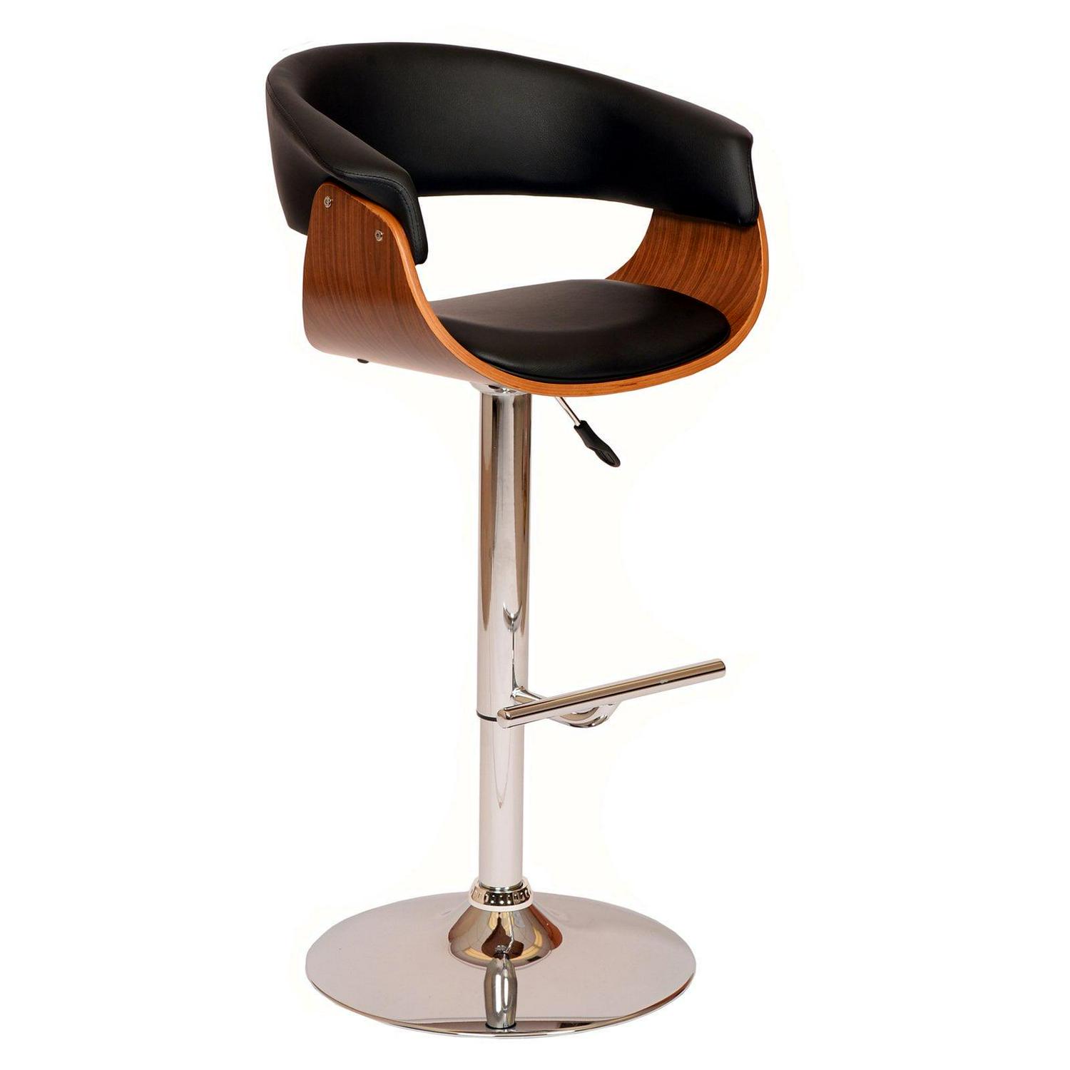 You don t have to dine at a French bistro to enjoy the chic sophistication of the Armen Living Paris Bar Stool. This beautiful stool is constructed with a sturdy metal frame in a gleaming chrome finish. The seat is crafted of warm walnut veneer that curves upward to cradle you in comfort, and is fitted with a built-in padded cushion. The seat back is plushly padded with foam and is covered in soft polyurethane upholstery that s available in your choice of color. The convenient air-lift function makes the seat height easily adjustable to fit your needs, and the foot rest offers added comfort as you sit. Glide from side to side smoothly thanks to the stool s convenient swivel function. Whether you re sipping cocktails at your home bar or cutting into pancakes at the kitchen island, sit in modern style and elegance with this beautiful stool.
