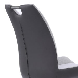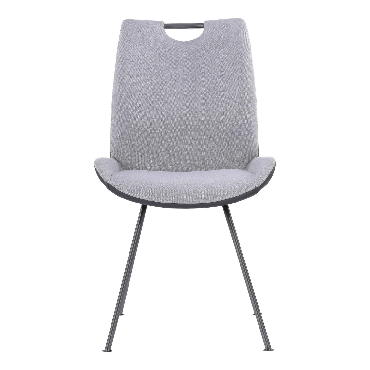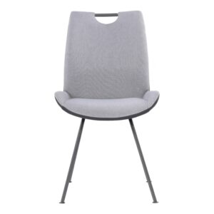 The Armen Living Coronado contemporary armless dining chair is a wonderful choice for any modern household. Ideal for the dining room, but great as additional seating around the home, the Coronado sports a Grey Powder Coat finish metal frame that assures durability without detracting from the chair’s stylish appearance. The Coronado s tall back design includes a handle, facilitating easy transportation from room to room. The chair s 4 leg base includes floor protectors, assuring that the Coronado will not slip on or scratch hardwood floors when moved. Pair the Coronado dining chair with the bench, dining table, and barstool of the same name to create a cohesive home décor experience. The stylish Coronado is available in two upholstery styles; Grey Faux Leather and Pewter Fabric. Sold in a set of 2.