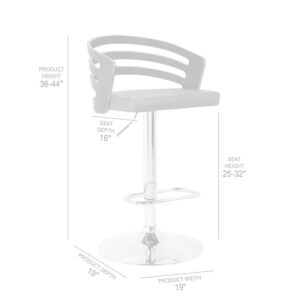 The Armen Living Adele Adjustable Height Swivel Black Faux Leather and Walnut Wood Bar Stool with Chrome Base is the perfect addition to your home. The adjustable seat height functionality allows you to use this kitchen stool at your home bar, kitchen island, or peninsula without having to worry about the surface height. The convenient swivel function optimizes everyday use or entertaining, keeping everyone engaged regardless of their place in the room. The plush padded seat with high-density foam will provide you with all-day comfort. The curved wood back is ideal for posture alignment and an unmatched support for days on end. The foundation of the product is supported by wood and features a metal footrest for a chic and stylish aesthetic without comprising practicality and functionality of this item. The mid-century silhouette exudes timeless beauty that will last for many years to come. The Adele is available in multiple color options, featuring a walnut wood back with your choice of black, cream, or grey faux leather upholstery with a Chrome base or a black wood finish with your choice of grey faux leather and a black base or grey faux leather and a chrome base.