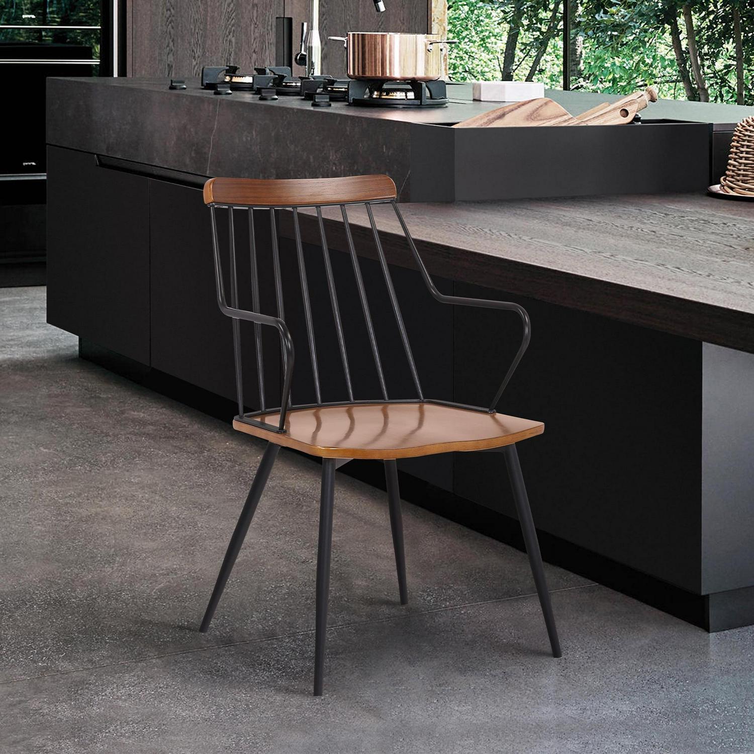 Armen Living Alcott Contemporary Walnut and Metal Dining Room Chair
