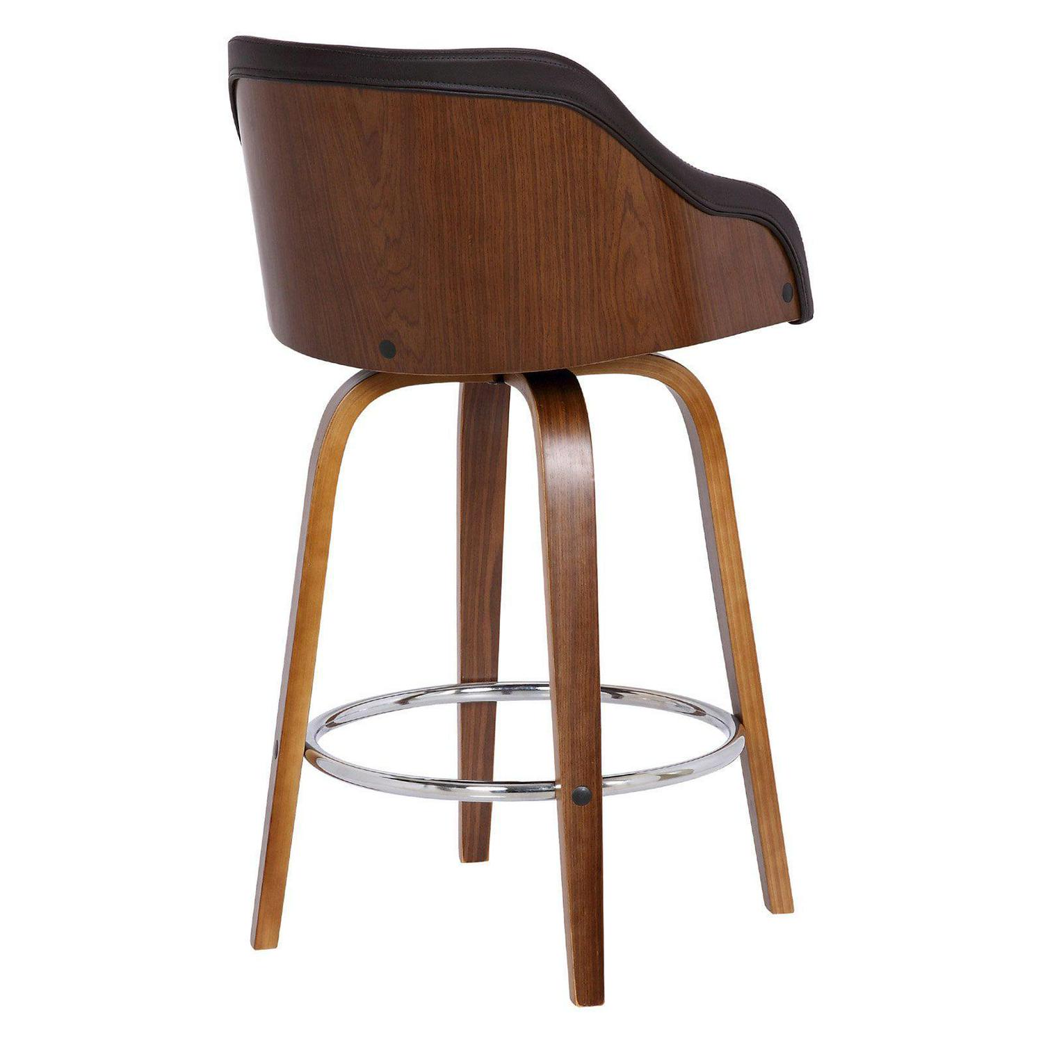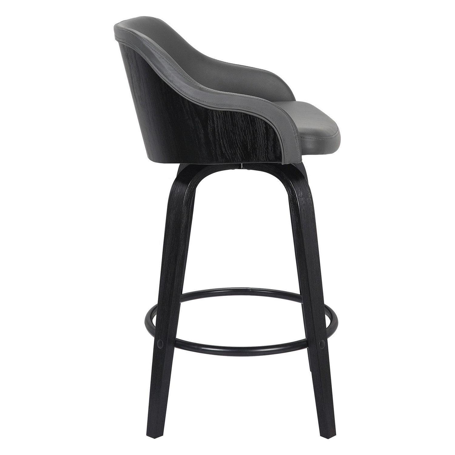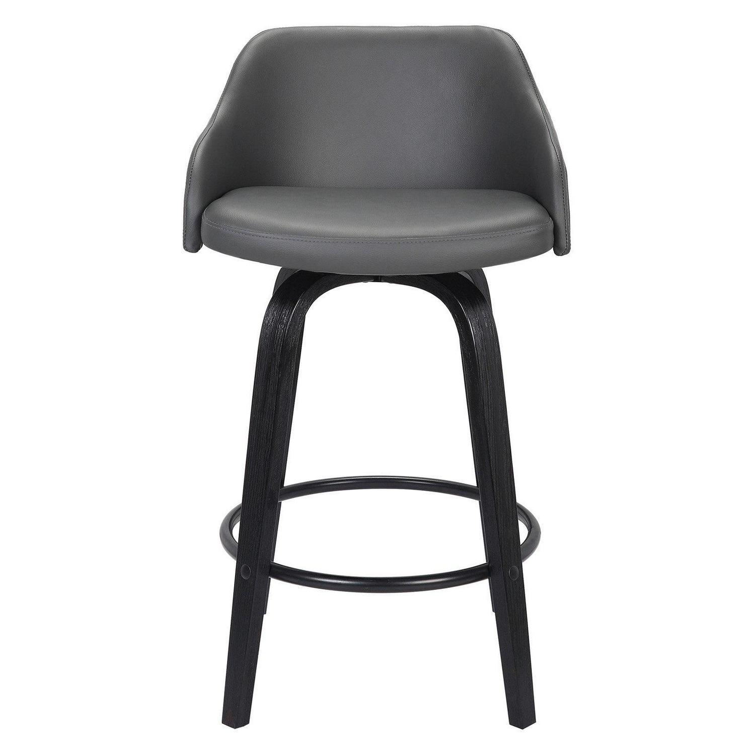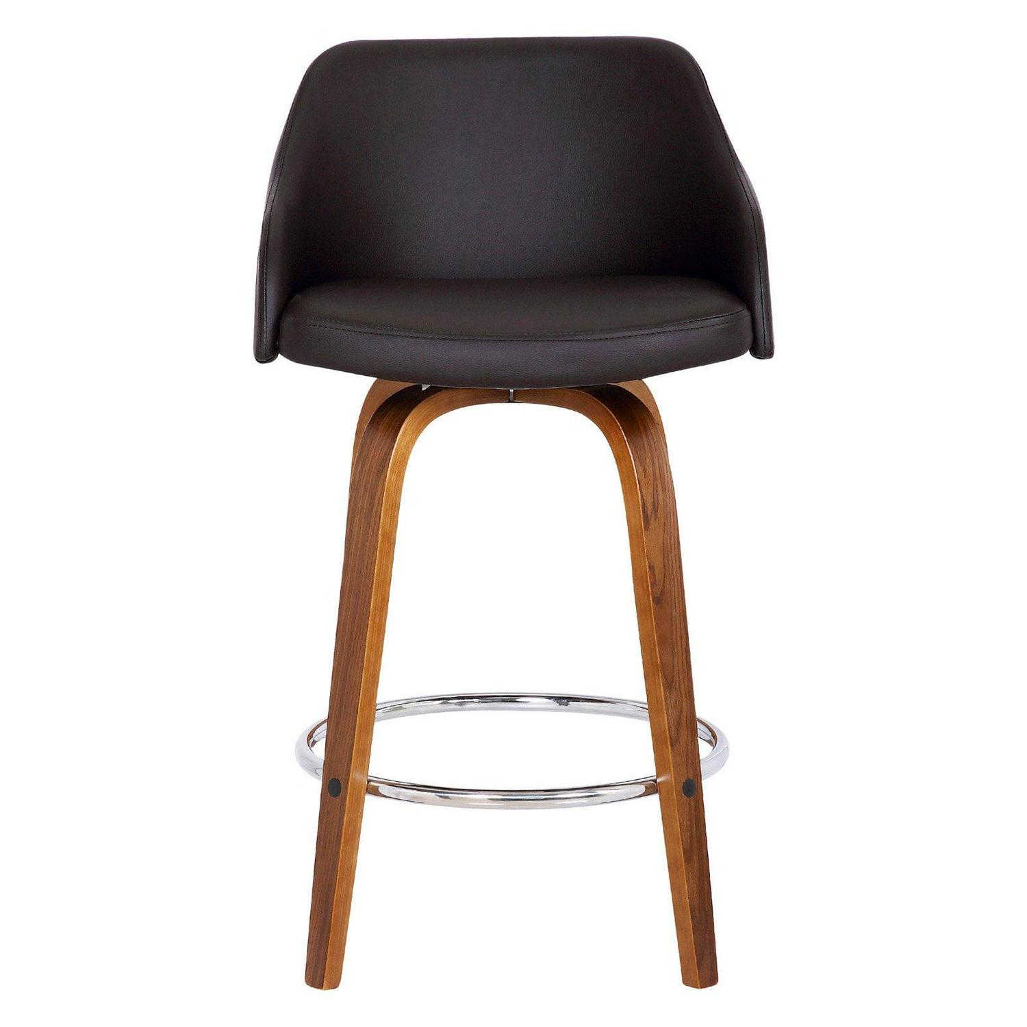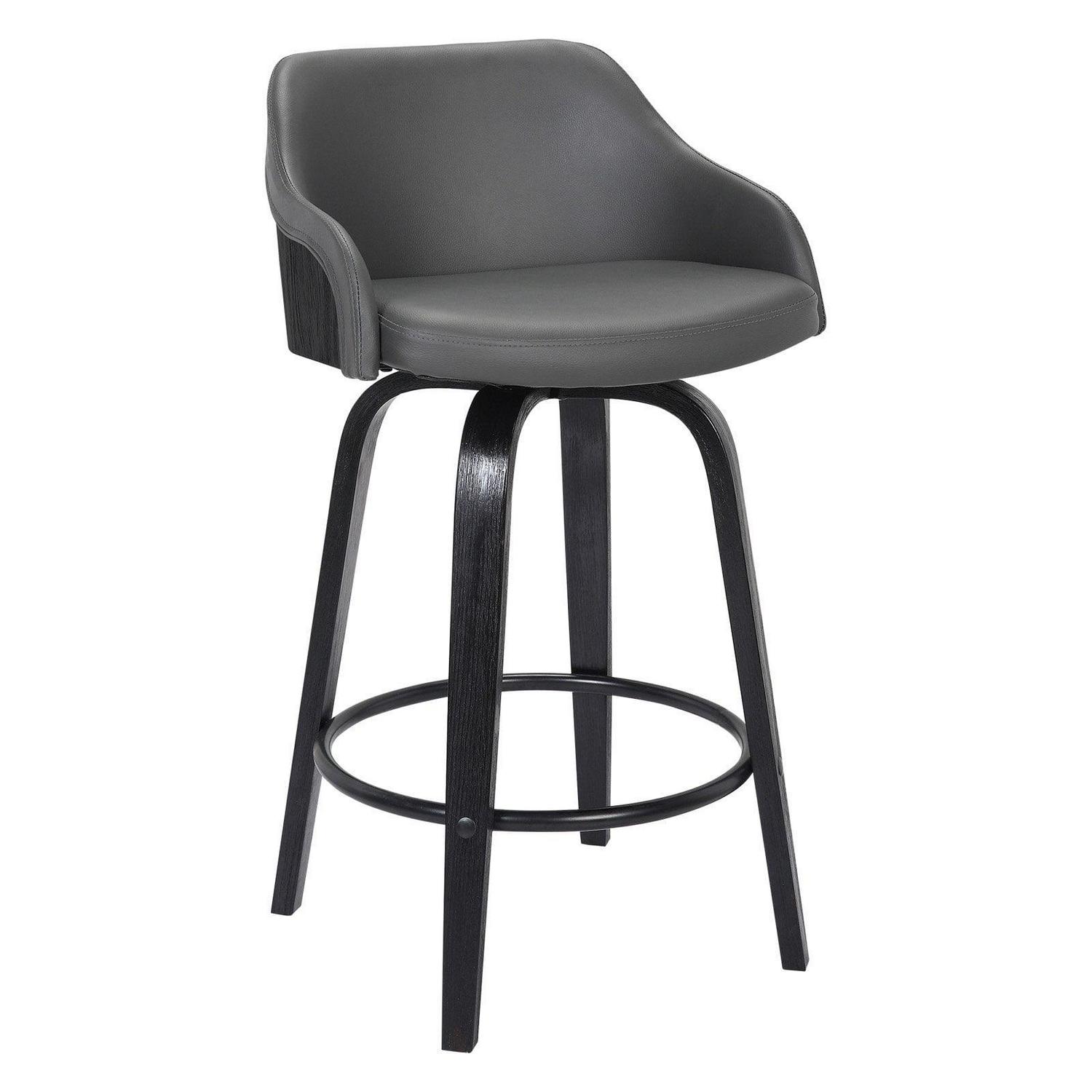 Give your home a modern industrial feel with the Armen Living Alec 26 in. Swivel Counter Stool. Crafted from wood with faux leather upholstery in your choice of available colors, this stool complements any home in a winning fashion. Boasting optimal lumbar support and a black powder-coated footrest, this piece is as comfortable as it is stylish.
