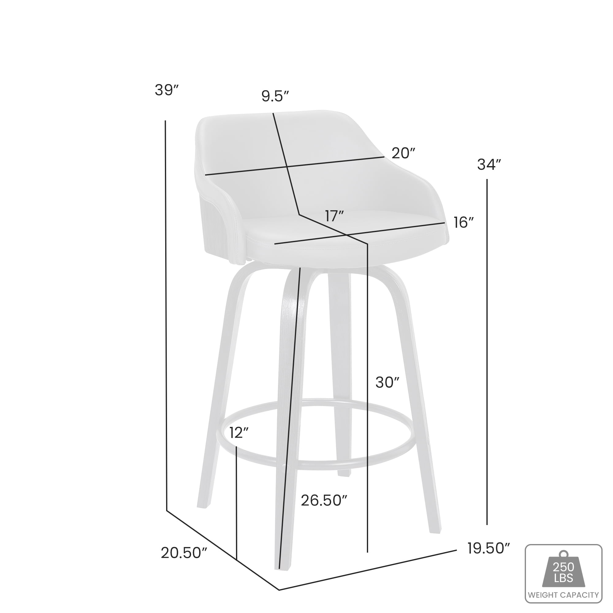 : Foam padded seat and low back design are exceptionally comfortable 360 degree swivel seat allows for optimal user mobility Material: Faux Leather Number of Items: 1 Weight Capacity: 250 lbs. Warranty: One year limited.