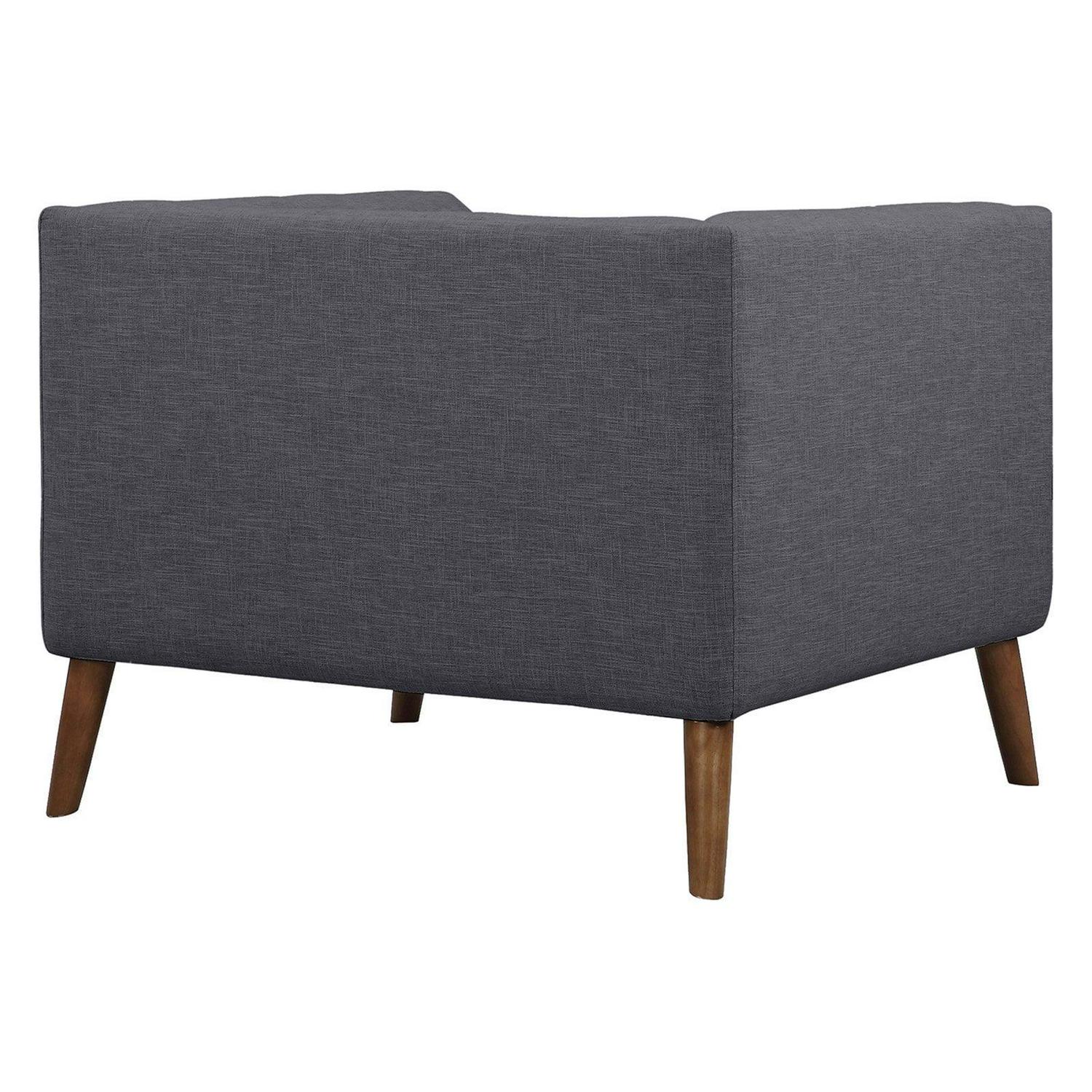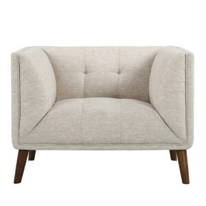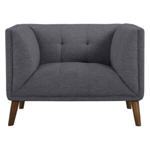 Settle yourself into the sleek, squared design of the Armen Living Hudson Club Chair. This sophisticated accent chair boasts clean lines and a beautifully tailored, compact profile that includes button-tufting and tapered walnut legs. The even arms and back, along with the seat, are thickly cushioned for the ultimate in comfort. Softly upholstered in your choice of available color fabric, this club chair instantly updates your space with a mid-century modern vibe. Pair this wood-frame piece with the other furniture in the Hudson collection for a look that’s coordinated and chic.