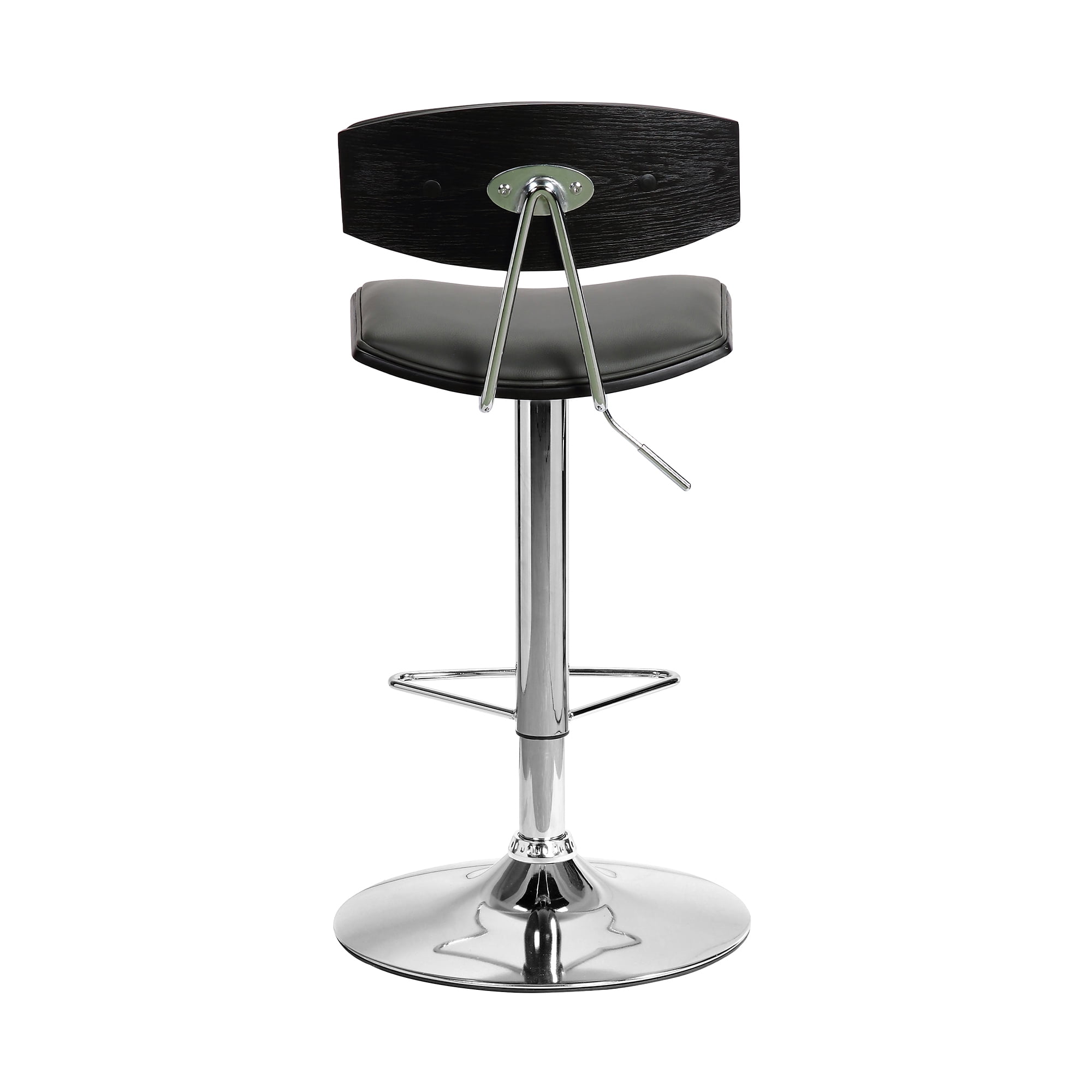 Chic and sleek, the Armen Living Erik barstool perfectly embodies mid-century modern design. Upholstered in faux leather, this barstool showcases an adjustable polished chrome base for a gorgeous, sophisticated look. The Armen Living Erik barstool is available in your choice of brown faux leather with walnut wood accents or Gray faux leather with black brushed wood accents and adjust between 34.5″ and 42.5″. Included: 1 Barstool Seat Height: Adjustable Upholstery Color: Gray or Brown Upholstery Material: Faux Leather Assembly Required: Yes Ships In: 1 Box Product Dimensions: Comes with standard 1 year limited warranty NOTE: Color and saturation may vary due to lighting and monitor/phone screen settings