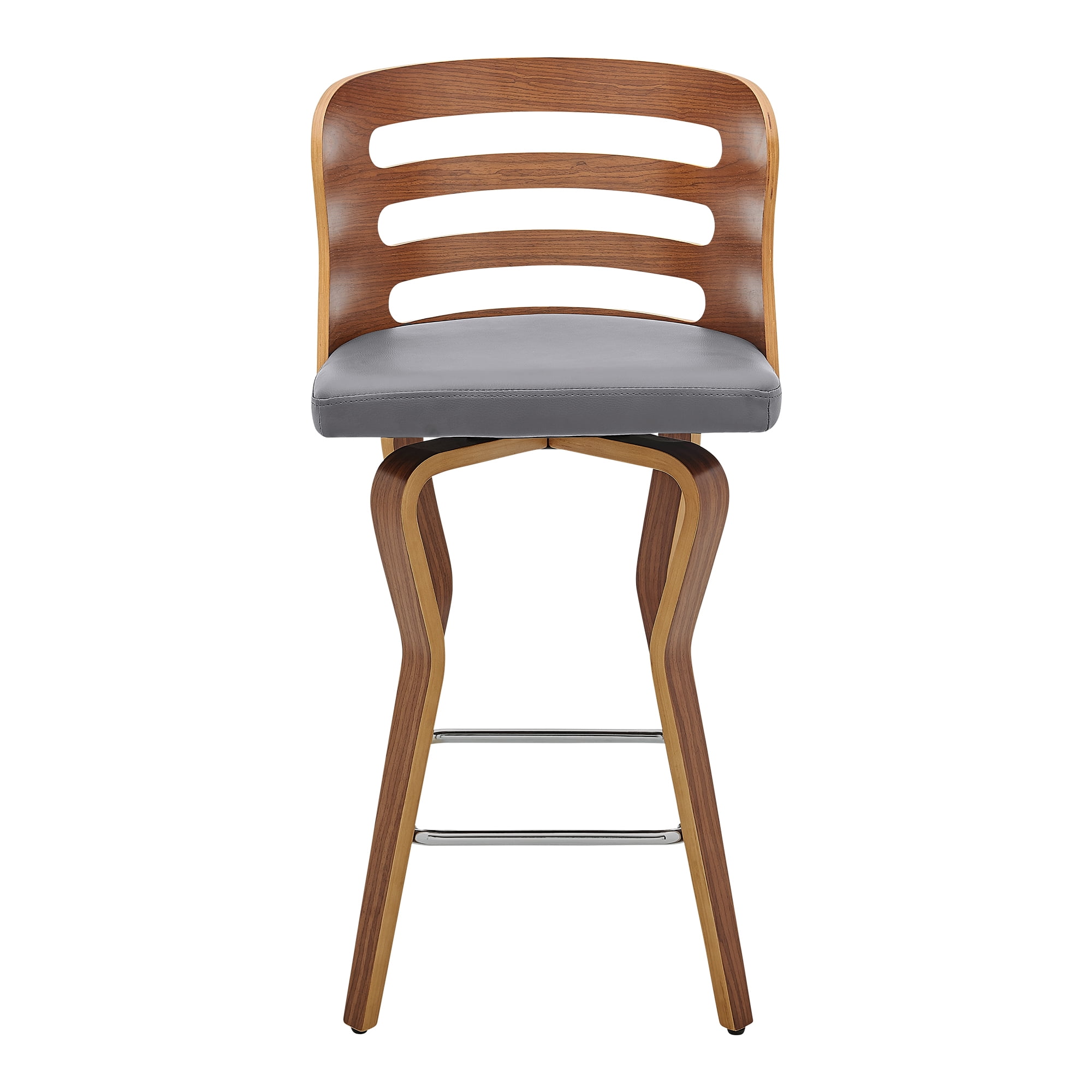 Gather your family and friends and seat them in the Verne 26″ Gray Faux Leather and Walnut Wood Swivel Barstool from Armen Living. This wonderful bar stool is crafted to be breathable, with its slotted back, as well as functional, with the 360-degree swivel function for full mobility. The faux-leather upholstery is soft, yet durable – covering the soft foam-padded seat, giving you the look, feel, and longevity you have always been looking for. The wood chair back and legs are crafted to be durable sturdy, doing all the work for you by maintaining themselves for many years to come. The Verne also features an additional footrest for extra comfortability. Also available in 26″ counter height and 30″ bar height.