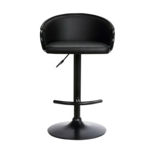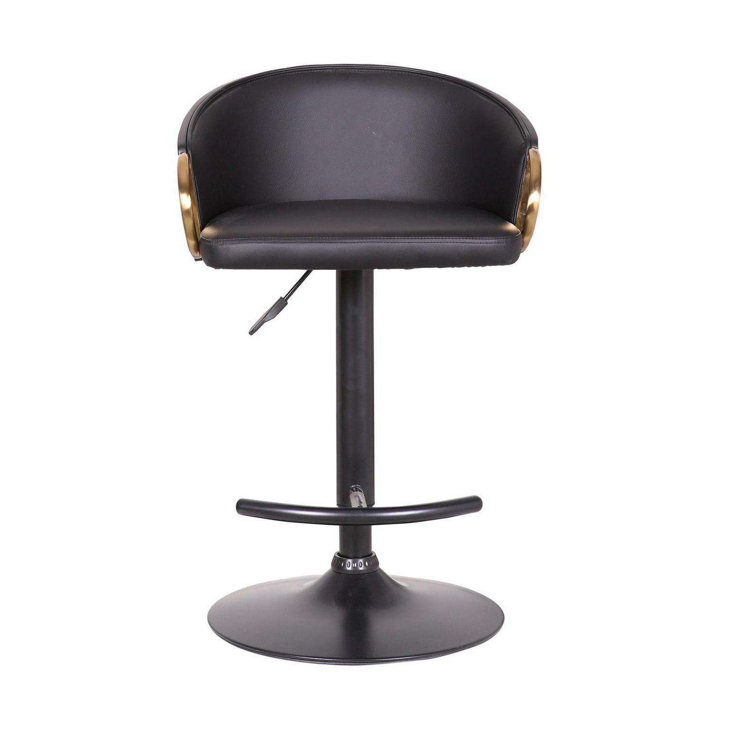 A stylish design that oozes class, the Armen Living Montego Solstice Adjustable Swivel Barstool has a comfortable seat made from high density foam covered in sumptuous faux leather. The distinctive, arching round backrest wraps around the seat, rising on both sides for added support. Below this lies the circular, hand crafted footrest fashioned from a black powder coated metal. A design that is unmistakably modern yet still draws inspiration from retro examples, the Montego Solstice fits well with any decor in any location, whether a swinging 60’s kitchen bar or a contemporary breakfast bar. It comes with a gas lift mechanism for variable height and 360-degree swivel, and a sturdy, circular base that keeps the whole stool stable. The Montego Solstice stool is available in black faux leather upholstery and your choice of metal accents.
