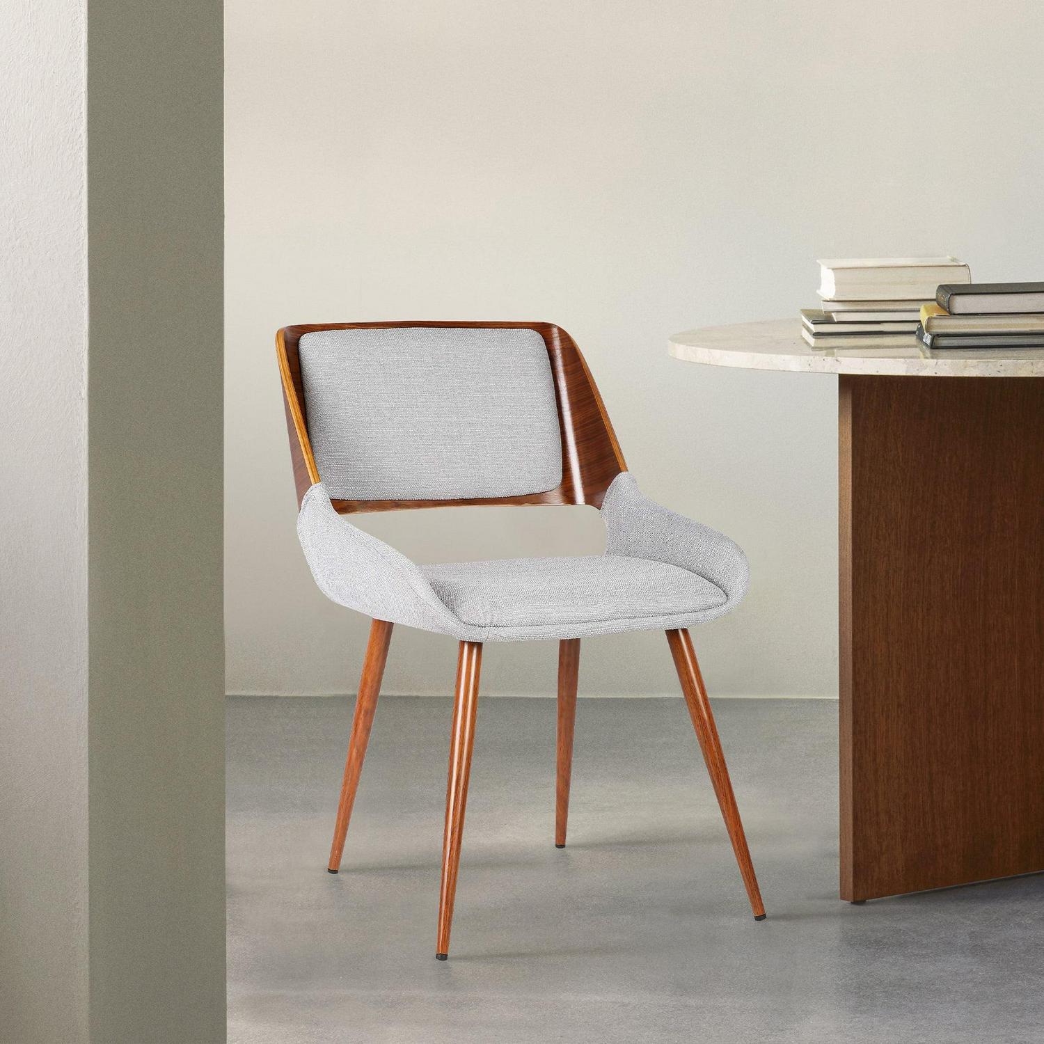 Armen Living Panda Mid-Century Dining Chair Walnut Finish and Gray Fabric