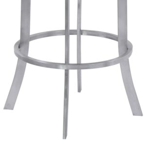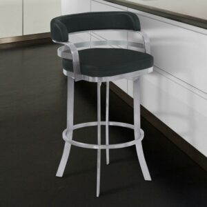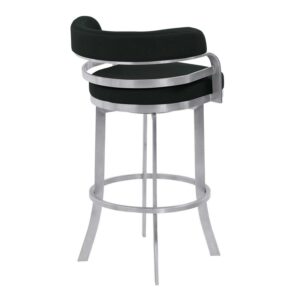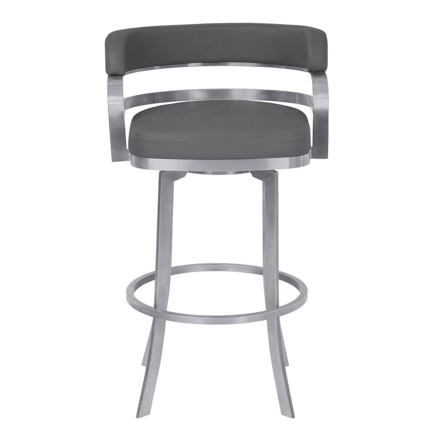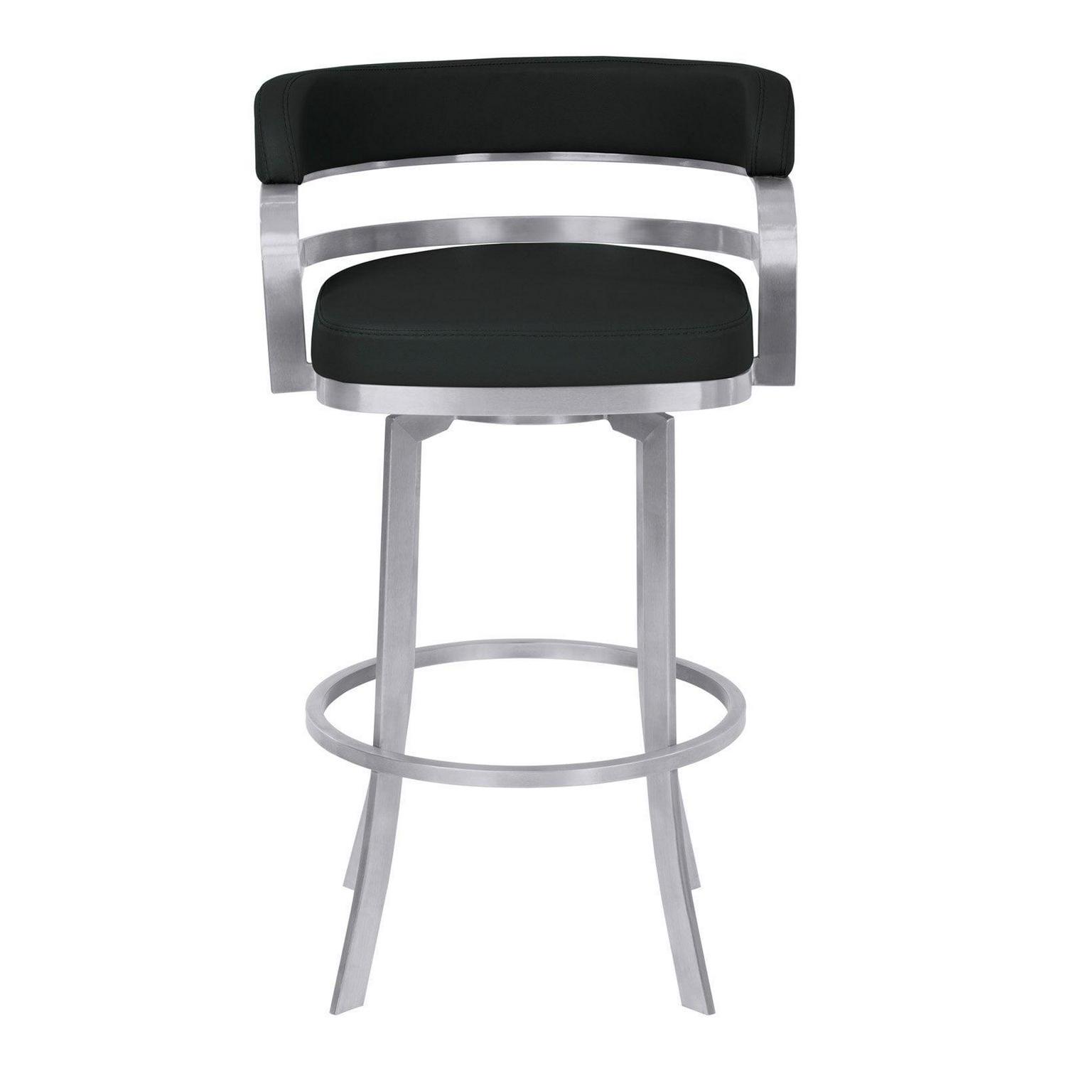Whether you re entertaining, enjoying a family meal, or having drinks with a loved one, the Armen Living Prinz 30 in. Bar Height Metal Swivel Bar Stool gives you a comfortable and stylish place to sit. The curved back and footrest are perfect for relaxing and add a classic touch to this modern piece. The steel frame is strong, durable, and beautifully complements the faux leather upholstery of this fetching stool. Select from the available colors to find the right fit for your home.