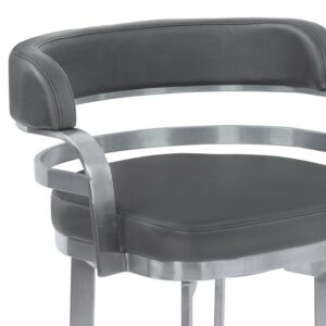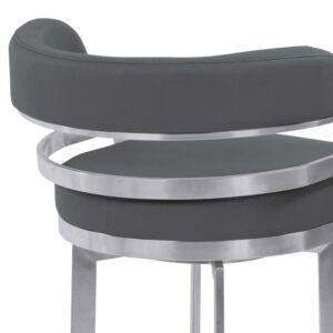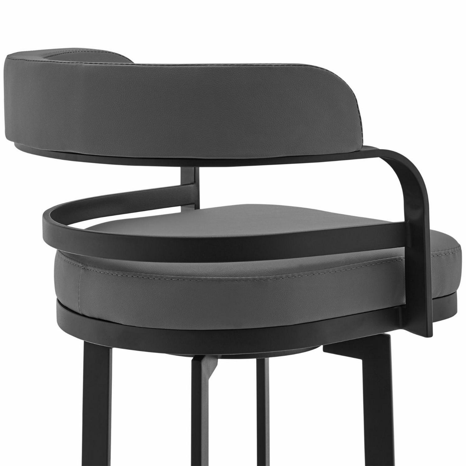 Armen Living Prinz Swivel Bar and Counter stool in Grey Faux Leather and Matte Black Finish