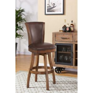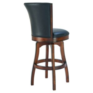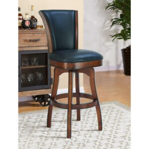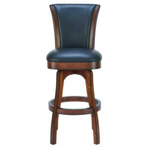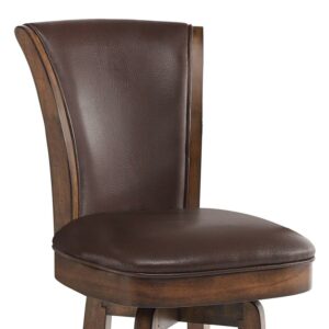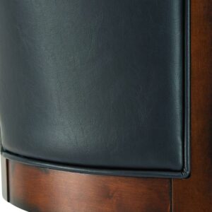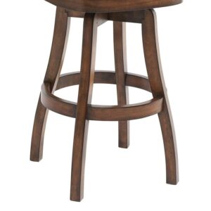 The Armen Living Raleigh 26 in. Armless Swivel Counter Stool provides you with a supportive way to sit at your kitchen counter or home bar coupled with swiveling action. This warm and richly colored stool features the available finish of your choosing paired with a faux leather seat and back. The curved backrest is fully upholstered and designed to give you complete support while the footrest contributes to the comfort level.