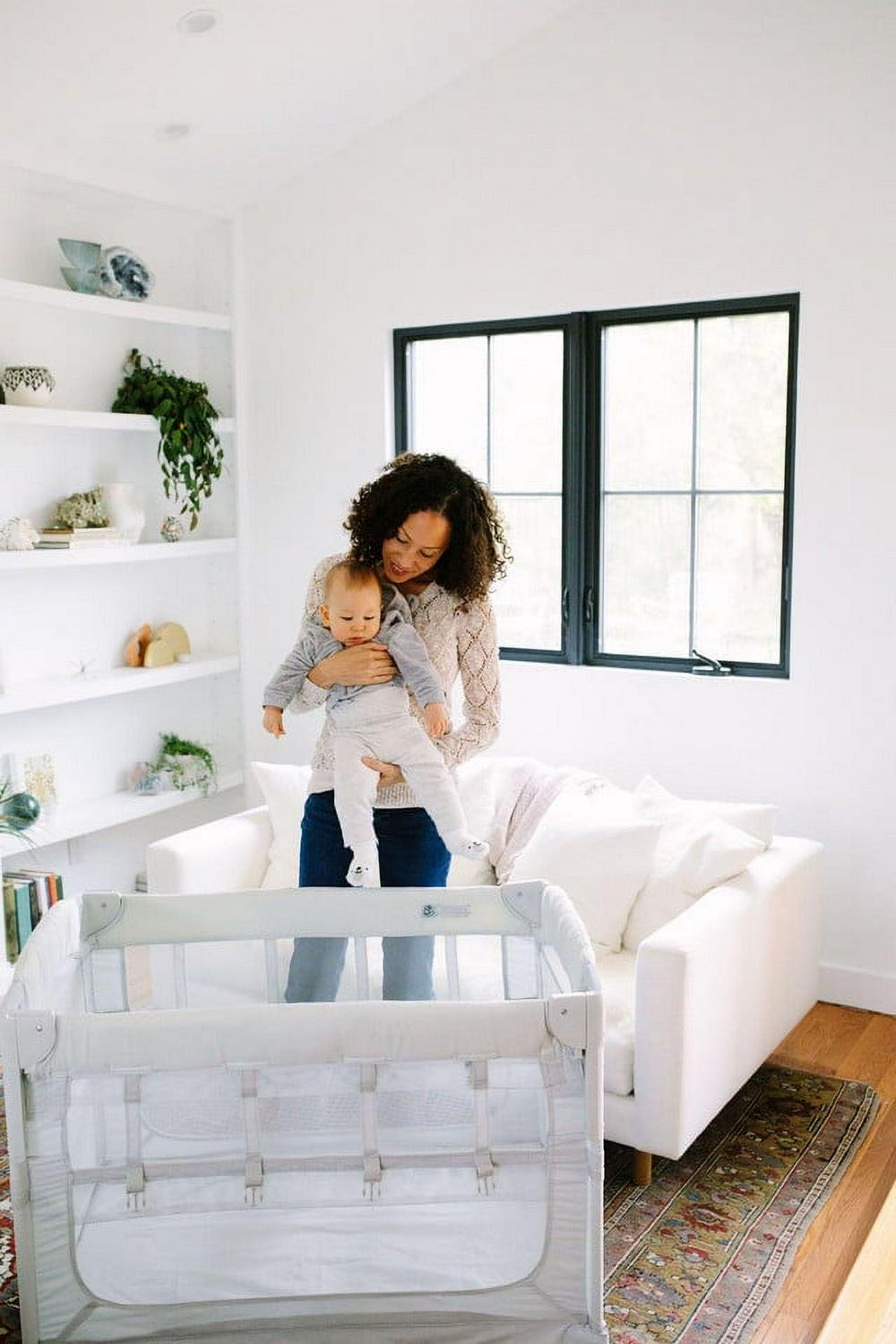 This bassinet has three modes to use as your baby grows! Bedside sleeper, free-standing bassinet, play yard, the Arm’s Reach Ideal Ezee 3 in 1 is the embodiment of what we’re all about. It’s easy to assemble, and portable too! It’s easy for diaper changing and nighttime feeding. It features Side pockets for storage, and an attachment strap and plate to provide the safest sleep solution for you and your newborn. After years of customer feedback and product developments, this is truly an ideal option for any concerned parent. Includes everything you need to get started: mattress fitted Sheet travel bag Nylon strap and plate for bed heights starting at 24″. Measured from the floor to the top of the adult mattress. If your bed is greater than 24″ Tall, a leg extension Kit can be purchased separately. The Mini 3-in-1 is portable, super easy to glide into the next mode, and folds quickly into its own nylon carrying case with a sturdy carrying strap. The Co-Sleeper brand bassinet in co-sleeping mode should sit flush against the parental bed mattress. Created by the brand that coined the word Co-Sleeper over two decades ago, this Co-Sleeper bassinet is the safest sleep solution for babies.