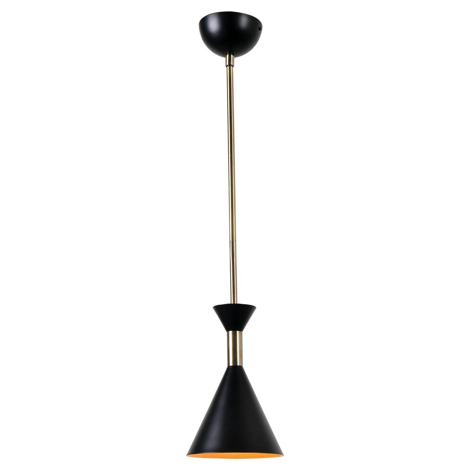 Give your home a modern accent with the Kenroy Home Arne 93792BL Mini Pendant Light. This metal pendant light features a sleek design complemented by a black matte finish. Its antique brass accents and conical shade lend a hint of mid-century inspiration.