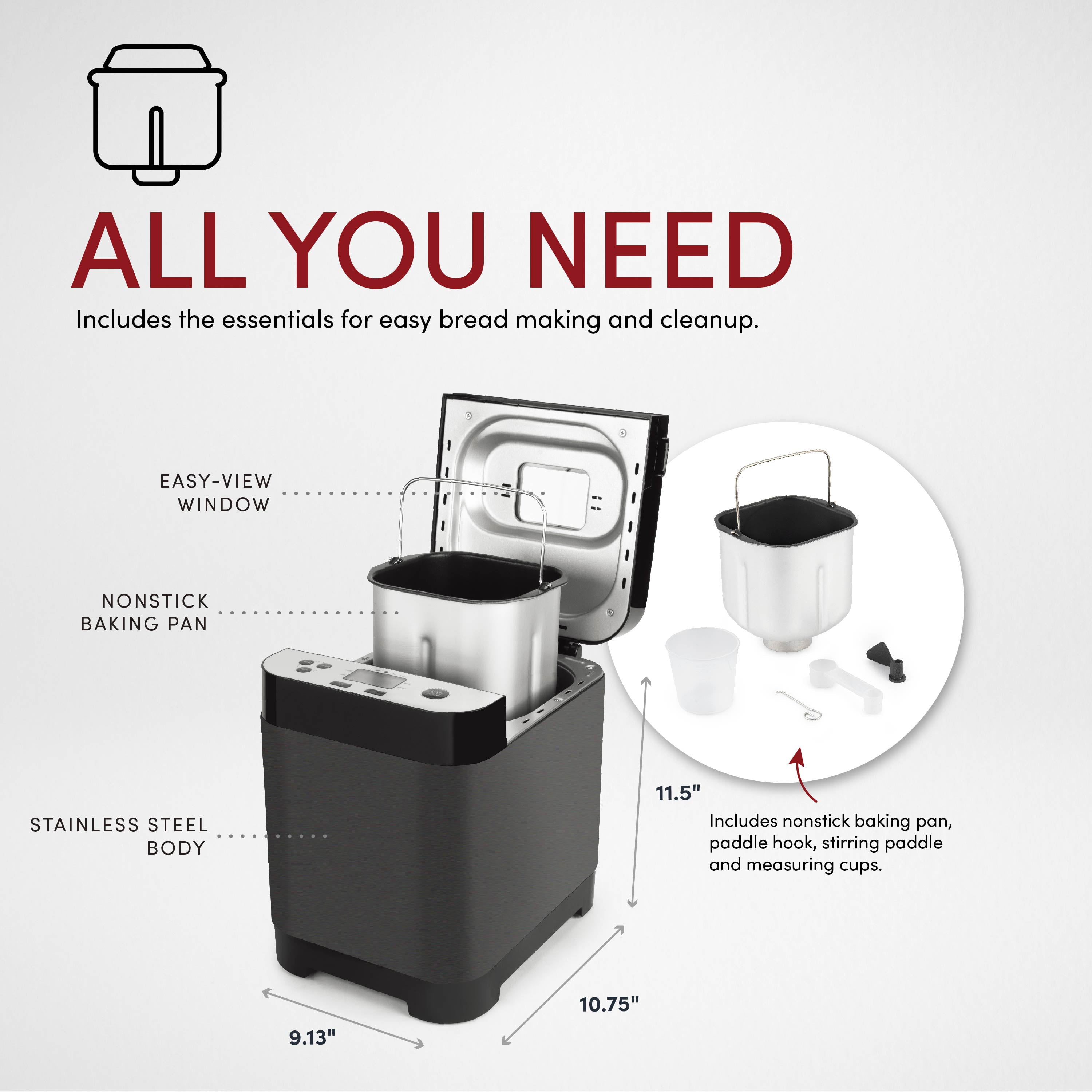 Are you searching for a bread maker that will make your kitchen the talk of the neighborhood? If so, then you should look no further than the great breadmaking capabilities offered by the Aroma 1.5L Bread Maker! This bread maker has a 1.5-pound capacity. With a brushed stainless steel color, this will look great in your kitchen too! Get your Aroma 1.5L Bread Maker today!