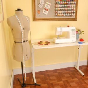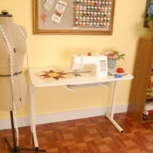 The Arrow Gidget Sew-Much-More Folding Sewing and Craft Table offers comfortable free arm and flatbed sewing options with an adjustable platform. The table’s locking steel legs provide a sturdy workspace for sewing or crafting. When not in use, simply fold the legs and store them. Easy to transport outside of the home or simply move between rooms when inspiration strikes.
