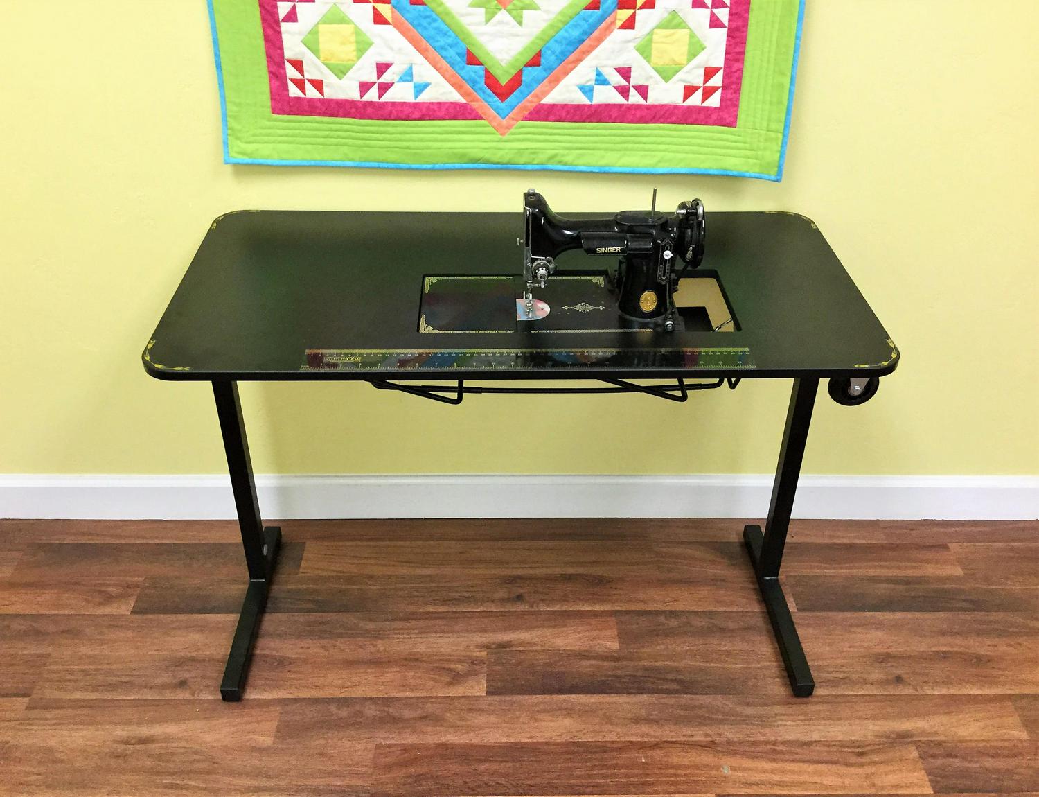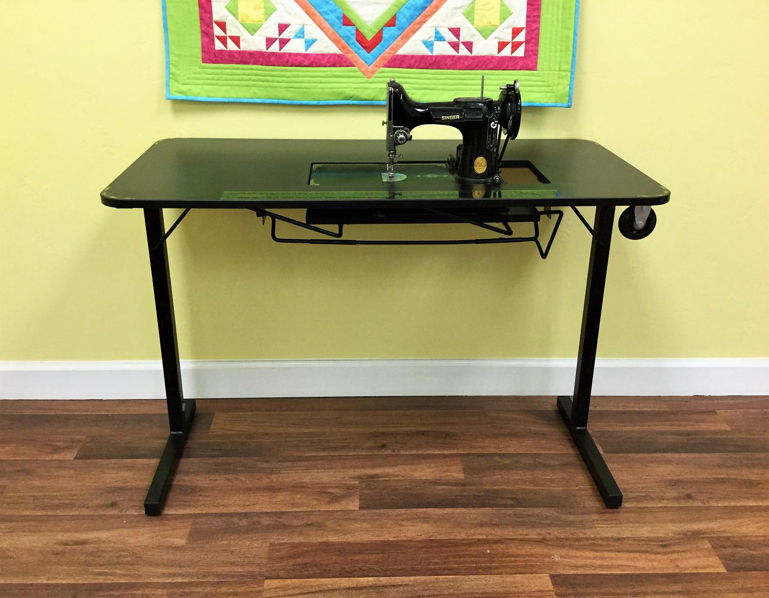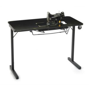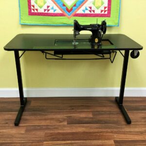 The Heavyweight Table is specially designed to fit your vintage Singer Featherweight! Its beautiful black finish and gold decals will complement your 221K or 222K beautifully. It is a sturdy table with an opening that is specifically sized to fit your Featherweight, offering free arm and flatbed sewing without the need for an insert. And contrary to what the name implies, it’s completely portable, so it’s perfect for taking to classes and retreats.