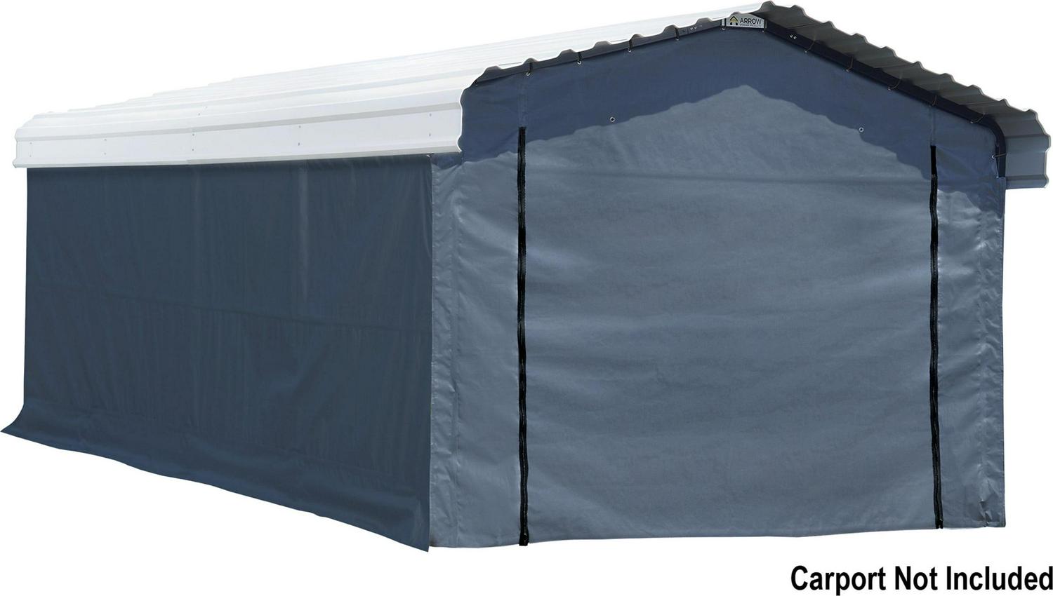Get the perfect accessory for your Arrow carport unit with the Arrow Carport Fabric Enclosure Kit with UV Treated Cover for 12 x 20-Feet Carports. The fabric enclosure kit is a multi-use shelter and carport that is perfect for vehicles, boats, outdoor picnic areas, patio furniture, or other items that you want to protect from the elements. The carport cover fully encloses your Arrow carport for year-round protection from the elements. With the included door panels on the front and back, you can conveniently drive-through for easy access. The tough, durable rip stop fabric cover is UV treated on the inside, outside, and in-between. It also resists fading with the added fade blockers and is resistant to aging, yellowing, and mold. The 7. 5 oz. triple layer woven polyethylene fabric is thick and sure to protect your car, ATV, lawn mowers, and other stored items. Unlike other popular carport enclosure kits, the rip stop cover has heat-sealed seams instead of stitched seams that are prone to failing and leaking. The heat sealing forms a completely fused and stronger bond that results in 100% water resistance. With a 1-year limited , you can be confident in your purchase. Assembled Exterior Dimensions: 143. 7″ x 239. 8″ x 98. 4″Assembled Interior Dimensions: 139. 8″ x 236. 2″ x 98. 4″Total storage area: 234 square feet Includes: (1) 2 Zipper Door(2) Side Panels(1) Rear Panel