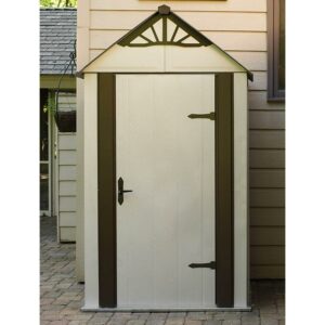 – CONVENIENT SECURE STORAGE: The Designer Storage Shed has a lockable (with key) swing door for easy shed entry/exit as well as front wall storage to better meet your outdoor storage needs.