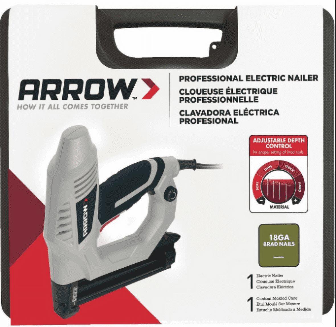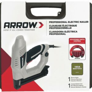 The Arrow ET200BN Electric Nailer does it all! This tool is designed with an adjustable depth control knob to allow the operator to set the correct amount of power for every job matching the size of the brad nail and the materials being nailed together. The Arrow ET200BN Electric Nailer is ideal for wood trim and lattice work. It features a soft comfort grip, oversized trigger, contact safety, six foot power cord, and convenient quick release magazine. No air compressor needed for the Arrow ET200BN Electric Nailer, which makes usage a breeze. Brad nails sold seperately.