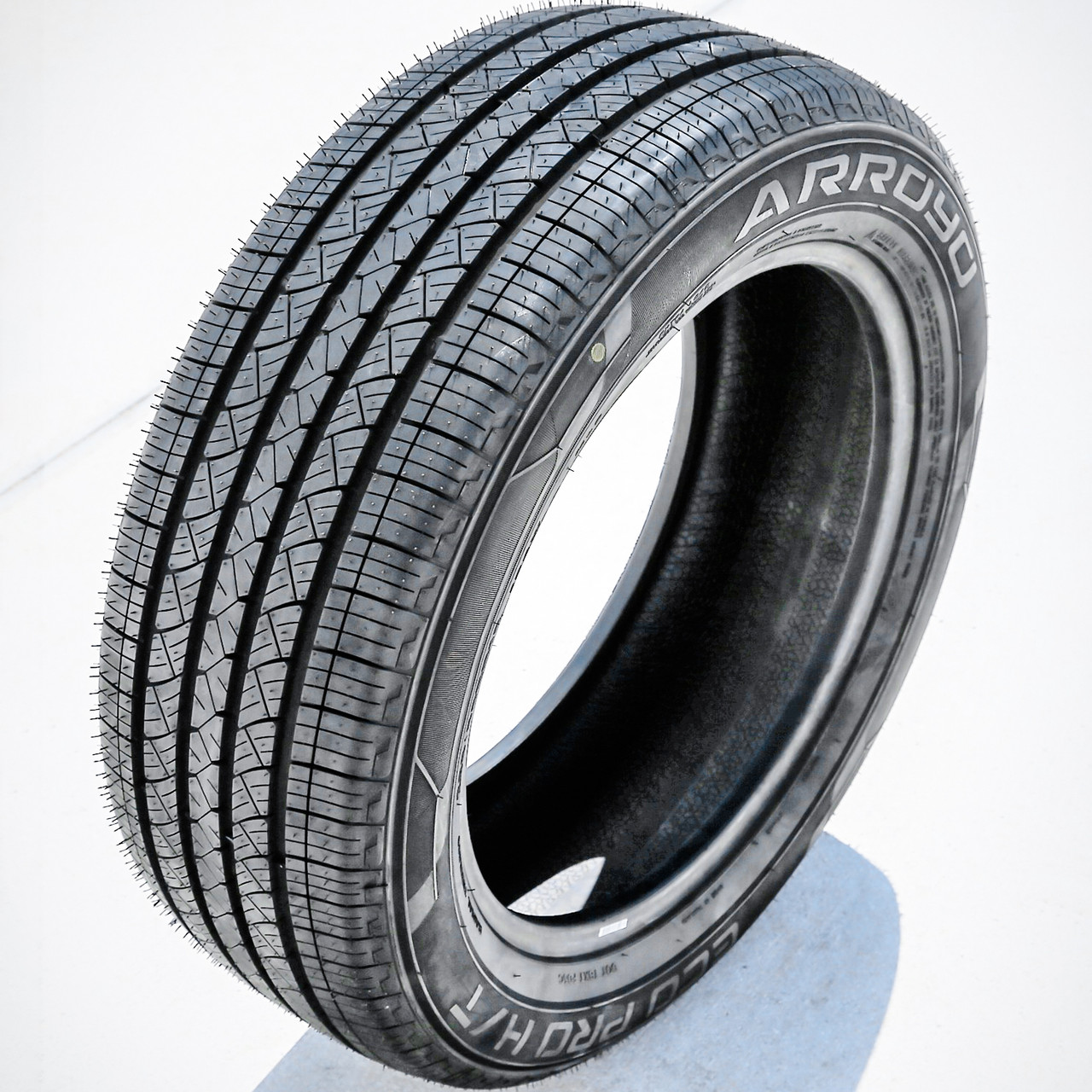 The Arroyo Eco Pro H/T is a highway terrain, all season tire made for light trucks and SUVs. It has some high performance sizes, too. Arroyo offers a 50,000 mile treadwear warranty with this model.