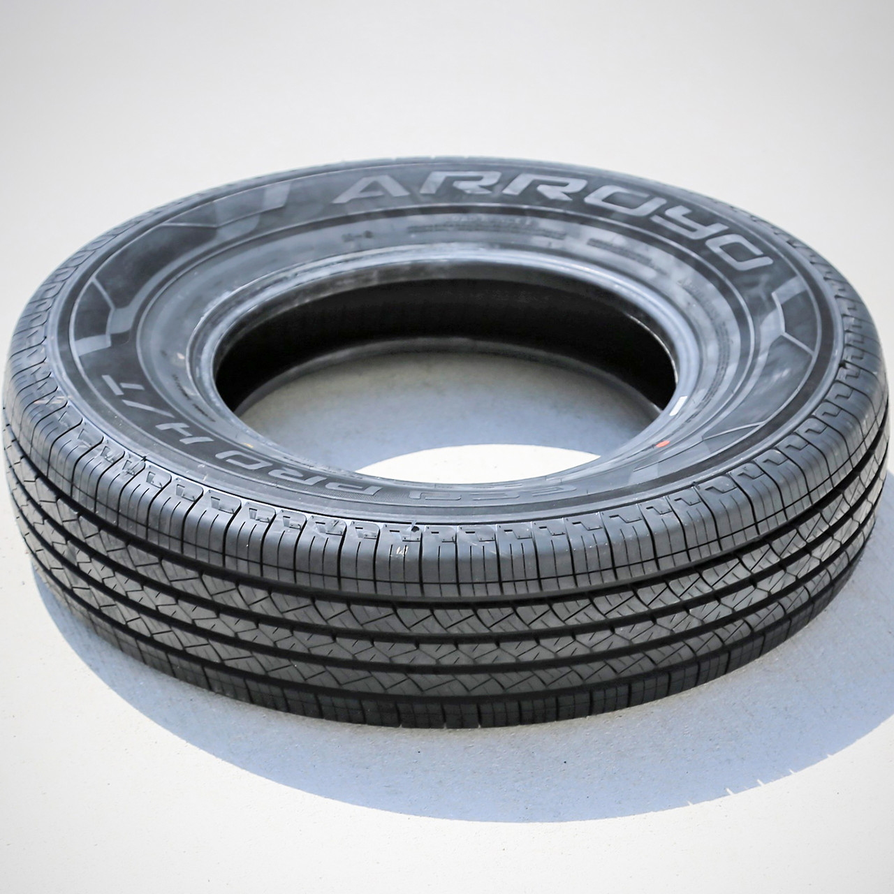 The Arroyo Eco Pro H/T is a highway terrain, all season tire made for light trucks and SUVs. It has some high performance sizes, too. Arroyo offers a 50,000 mile treadwear warranty with this model.