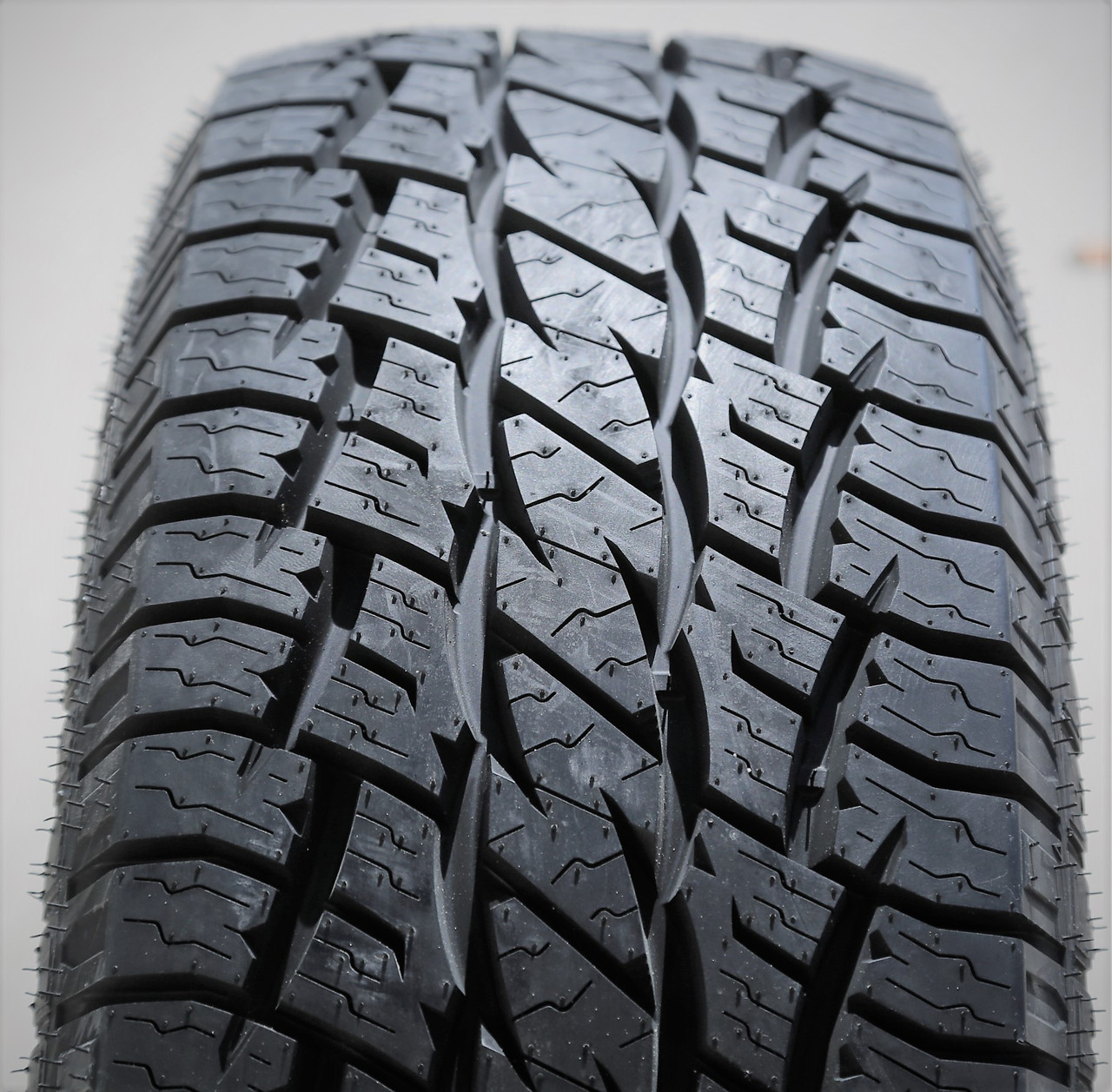 This model greatly upgrades the all terrain traction with the optimized footprint. The aggressive tread design with the staggered block placement and high void ratio manages to significantly improve the soft, loose, and uneven terrain performance. The enhanced traction provided by the tread elements enables the tire’s constant forward motion, even through deep mud. In other words, the tread greatly increases its driving safety levels. The tread also keeps the footprint clean and avoids stone retention with its self-cleaning ability.