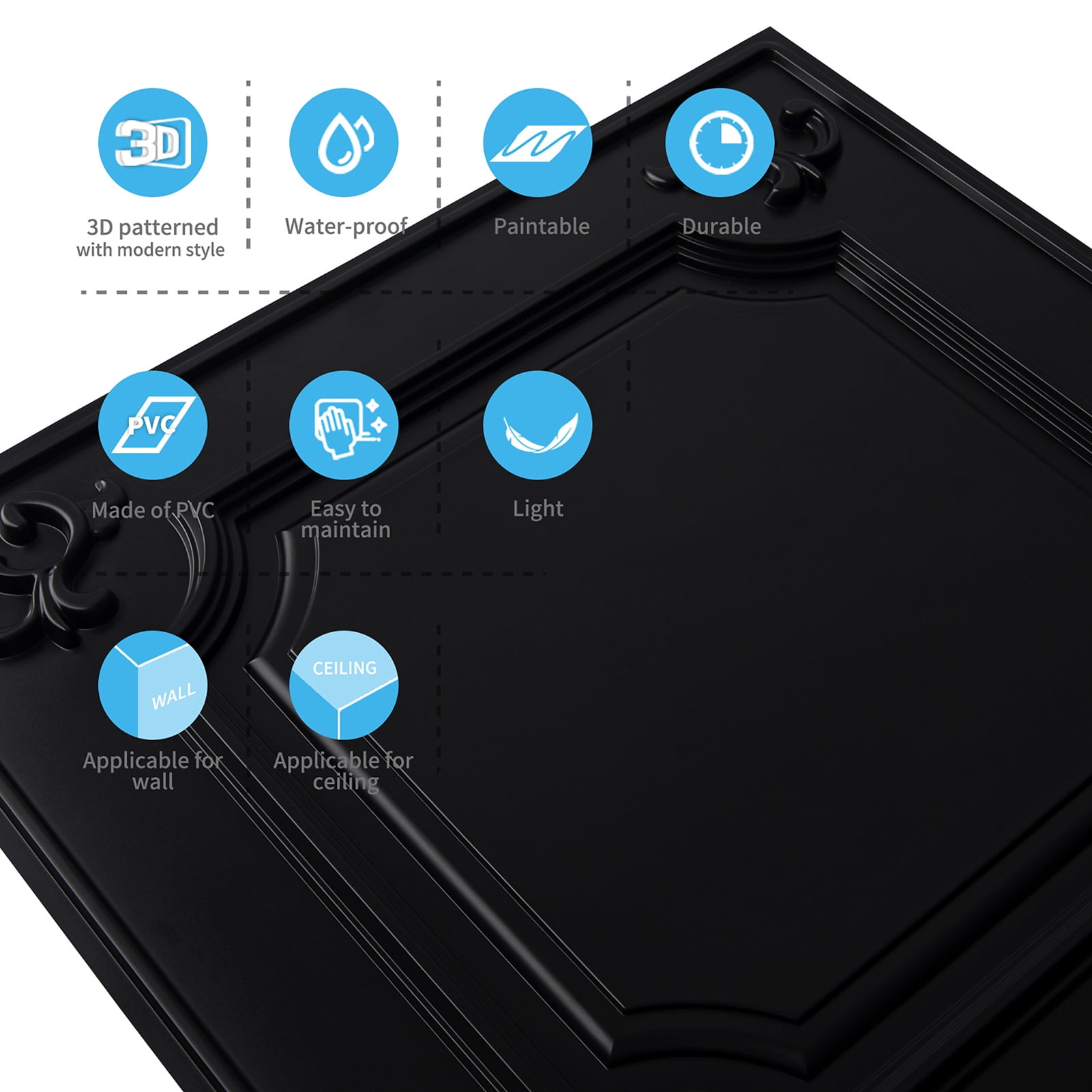 Art3d ceiling tiles/panels are fabricated from the classic, stylish and elegant designs. It’s made of premium PVC, which is thin, lightweight, paintable, humidity and corrosion resistant, extremely easy to work with. It can be cut with a snip, scissors, or utility knife, won’t create any dust. It won’t absorb moisture and stain, won’t shatter when moving of it. It’s designed to install both for dropping in a standard 15/16” T bar grid system and Gluing up on any flat substrates. Since it’s pretty light, you can process the installation just by yourself.