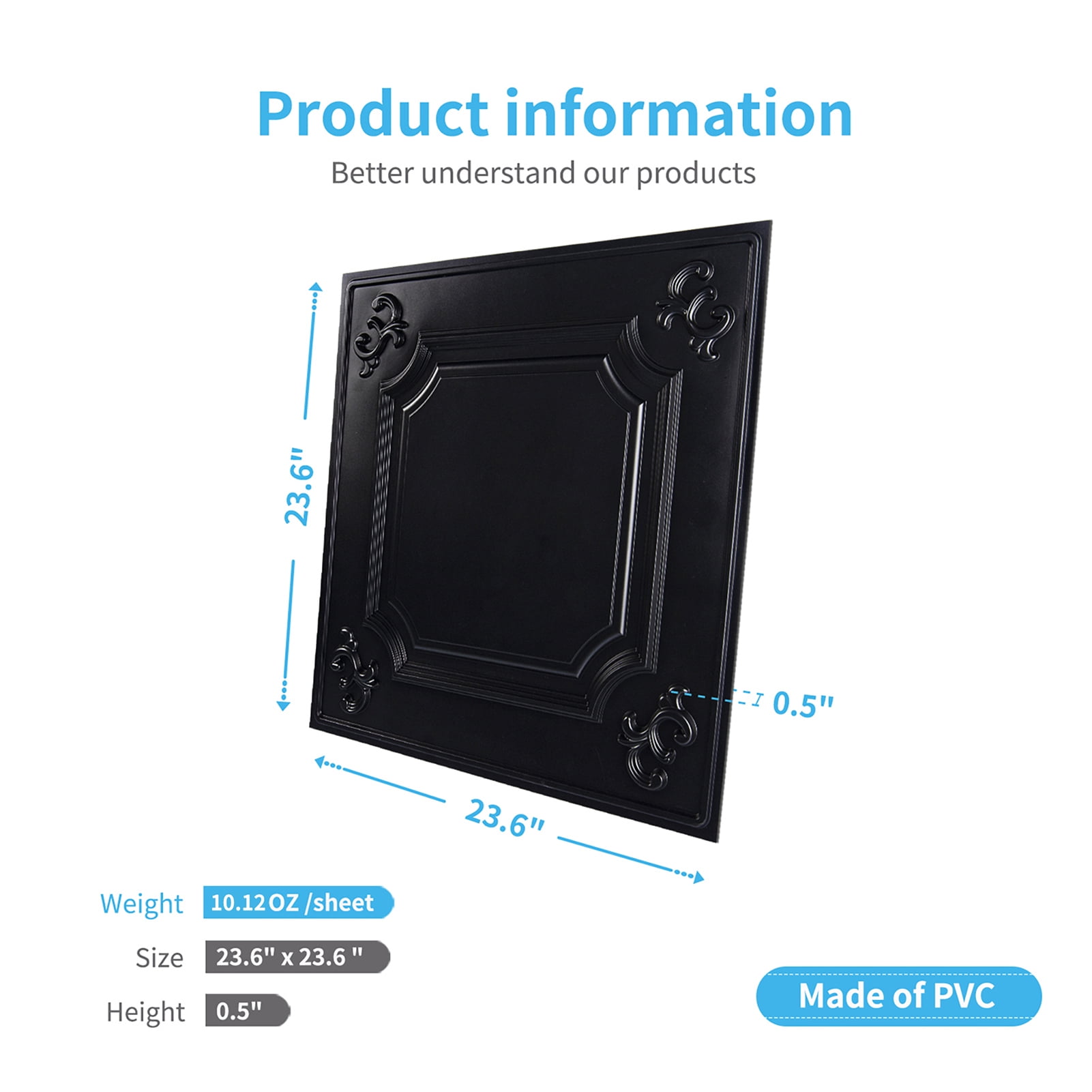 INSTALLATION-Easily lay into a standard 15/16″ T-bar drop ceiling grid system or glued over any flat substrates MATERIAL: It’s made out of lightweight PVC, flexible and will not crack, water and corrosion resistant for exceptional durability, safe and fully recycable QUANTITY: It contains 12 tiles of sized 24″x24″, and 1 part of blank tile for border trimming. Covering 48 sq.ft