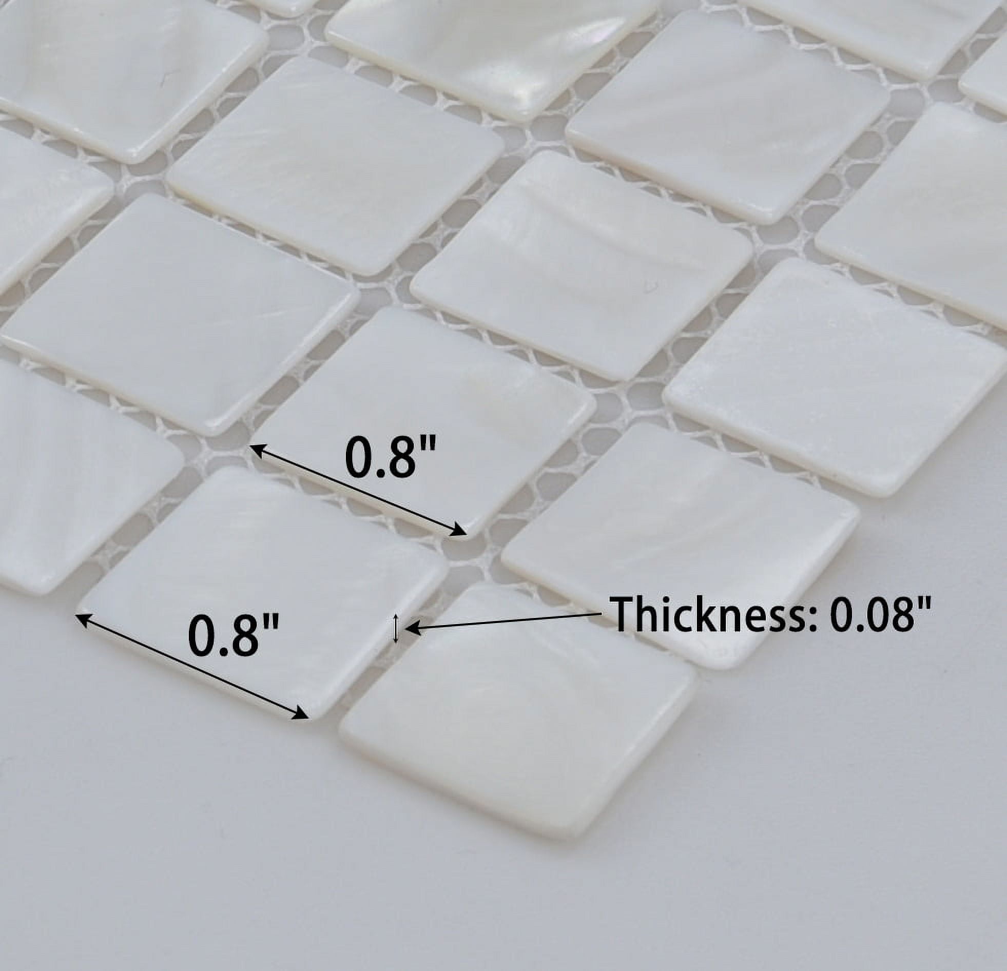 Premium quality genuine mother of pearl mosaic tile As a natural product, the hues in mother of pearl may vary. Come in pack of 10; Each Size: 11.8 x 11.8 x 0.1In. (300*300*2mm), Chip Size: 1″ * 1″ (25*25mm) Natural textured and mesh mounted Recommended Use: Kitchen Backsplash / Shower Walls / Bathroom Backsplash / Fireplace / Shower Room