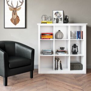 – Features nine cube storage that highlights the presentation for your books, photos or knickknacks