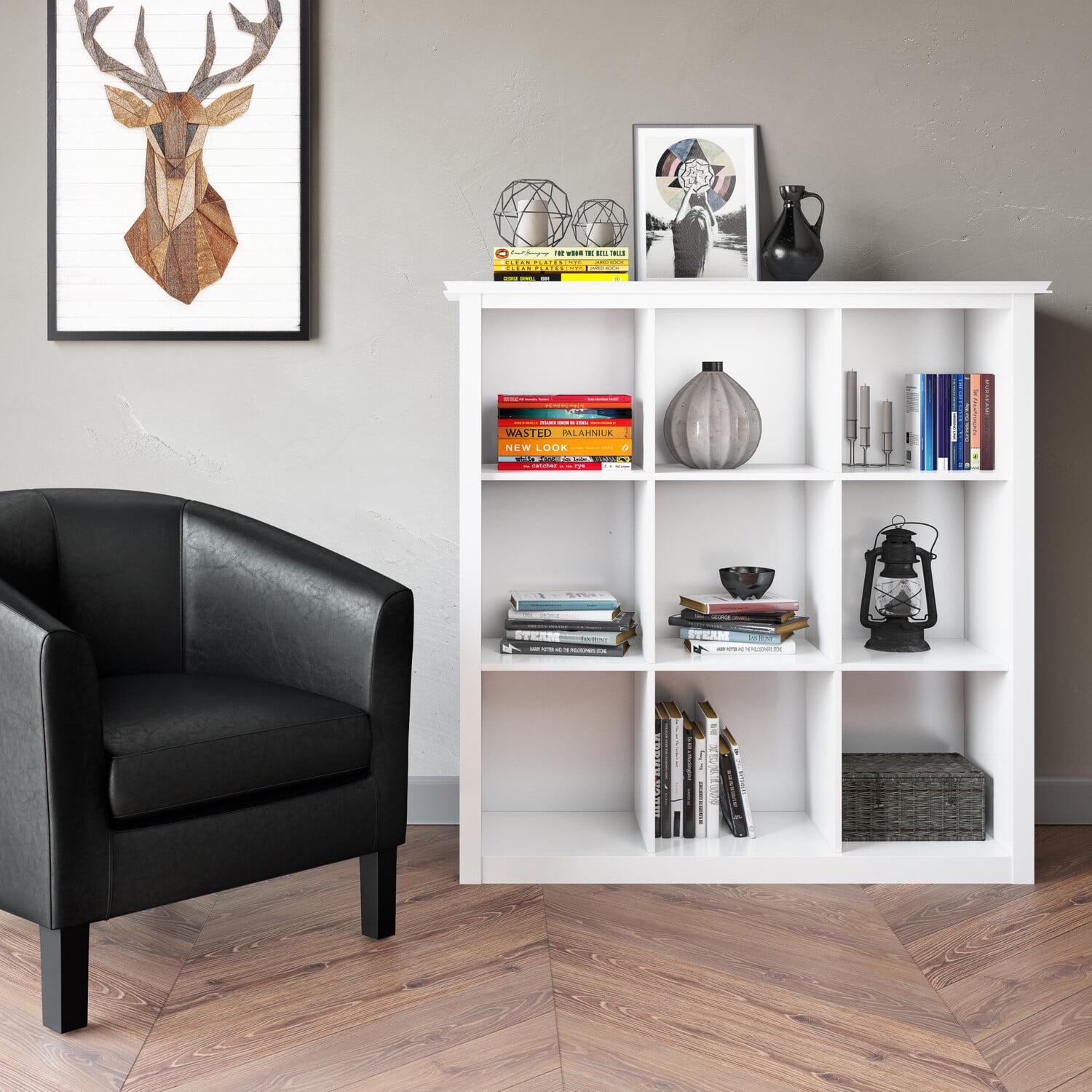 - Features nine cube storage that highlights the presentation for your books, photos or knickknacks