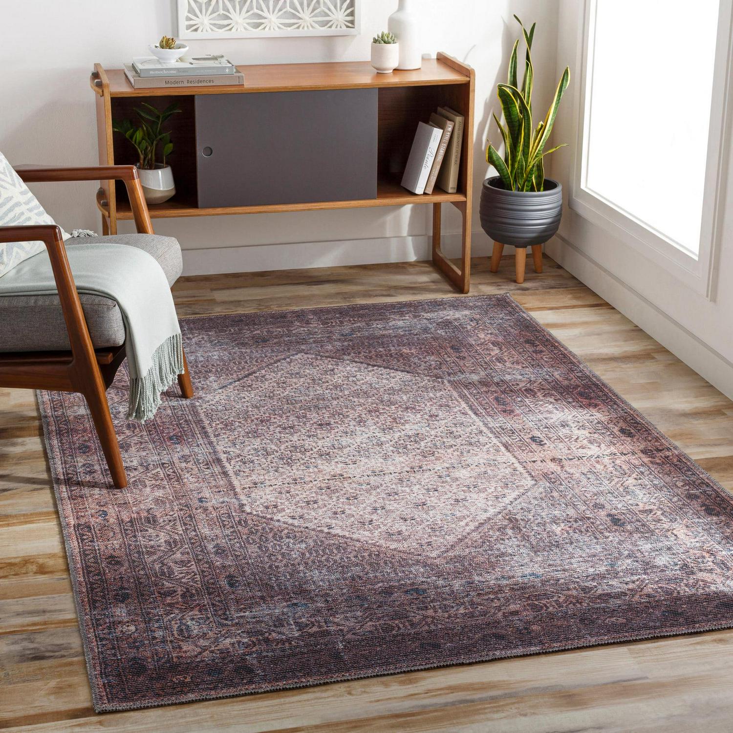 Artistic Weavers Colin Oriental Machine Washable Area Rug, Eggplant ,5’3 x 7’3